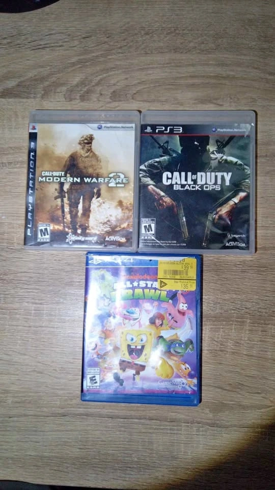Call of Duty: Black Ops (PS3), Call of Duty: Modern Warfare 2 (PS3), Nickelodeon All-Star Brawl (PS4). Each game is $15.