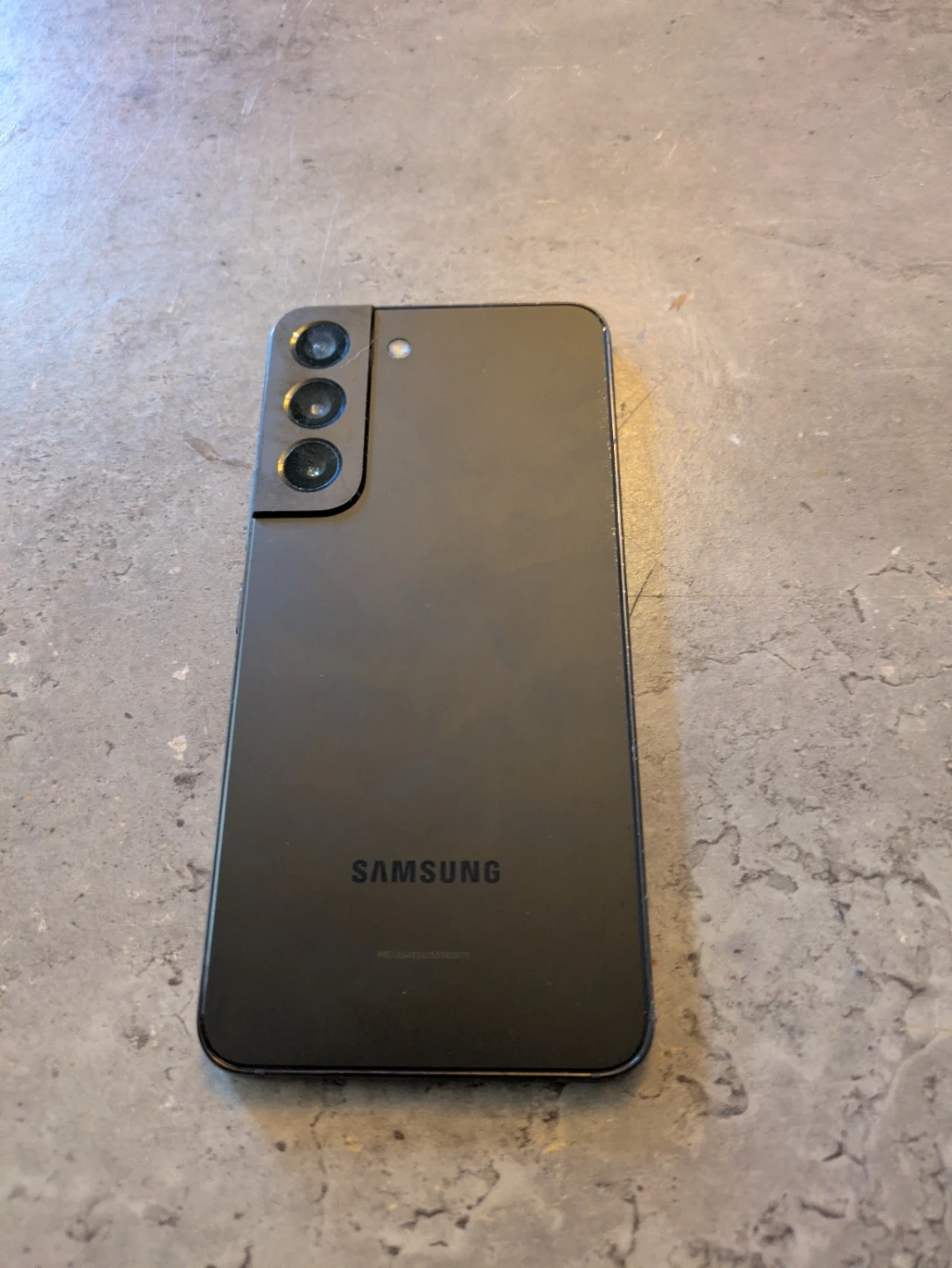 This is a Samsung Galaxy S22 smartphone in black. It's in great condition. This device is unlocked and ready for a new user. Sides are a bit scratched. I also have a phone case for the phone if anyone is interested.