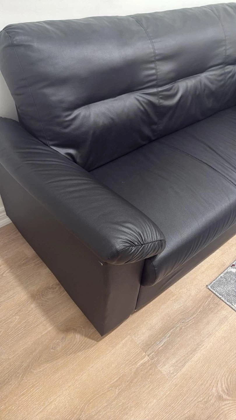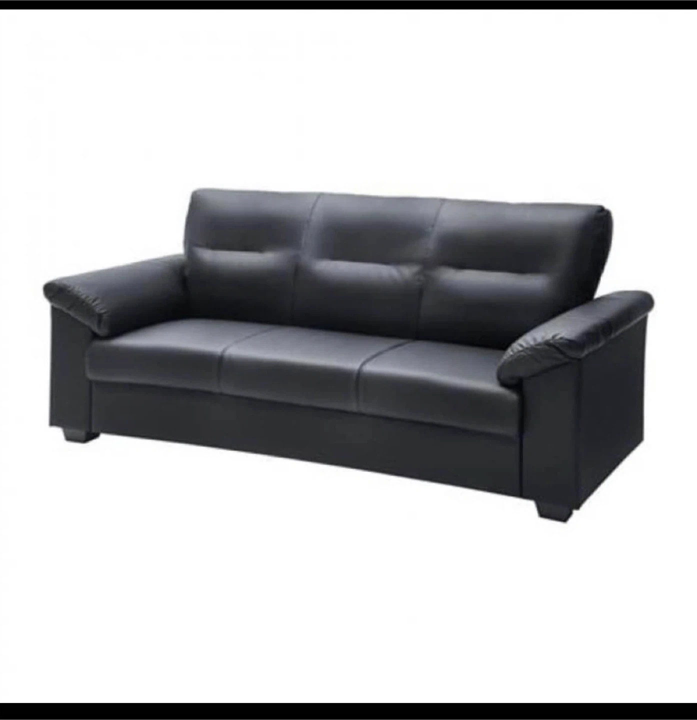 IKEA black faux leather 3 seater sofa .