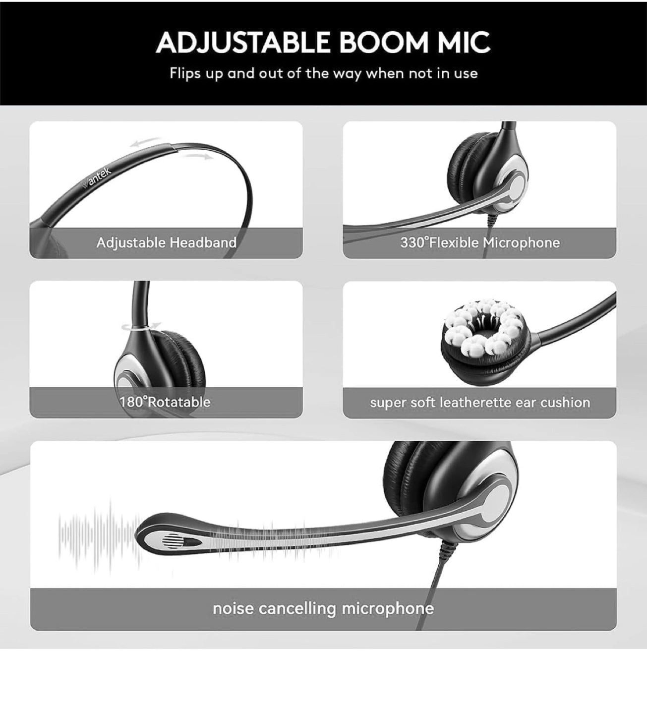 Selling a Wantek 602F Series Headset. It's in excellent condition and comes with the original box! Features include an adjustable boom mic that flips up when not in use, a flexible microphone, and a super soft leatherette ear cushion. The headset also has a noise-cancelling microphone and a long cable for freedom of movement.