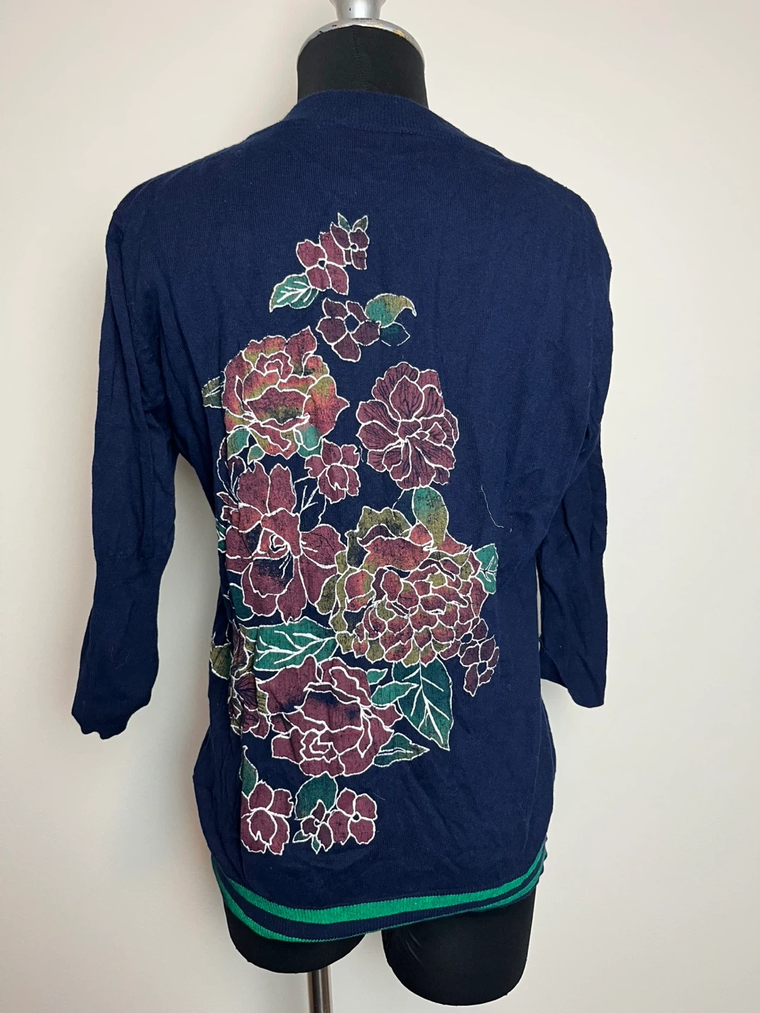 Scrapbook Originals Navy Blue Cardigan with Floral Back Size M