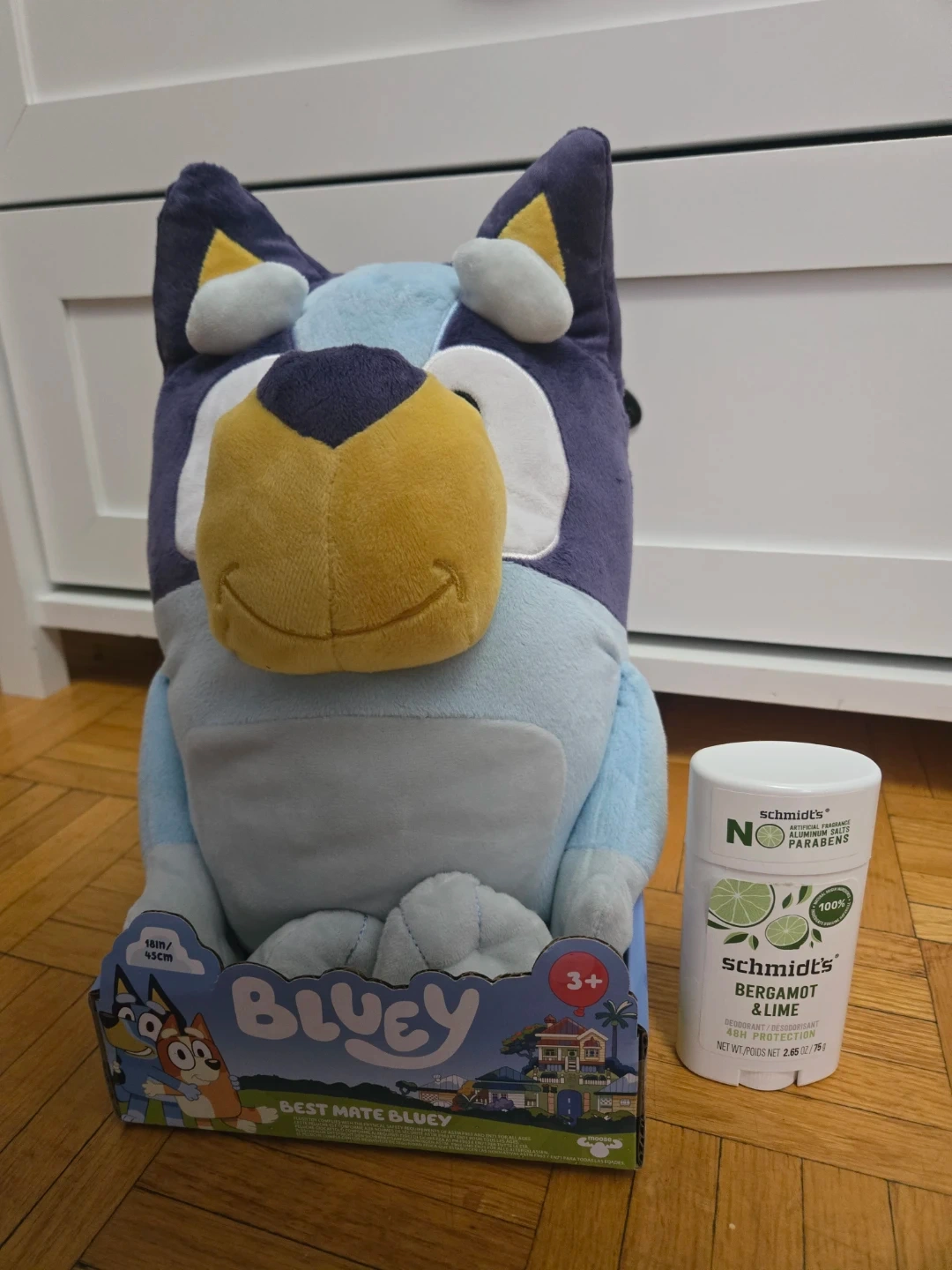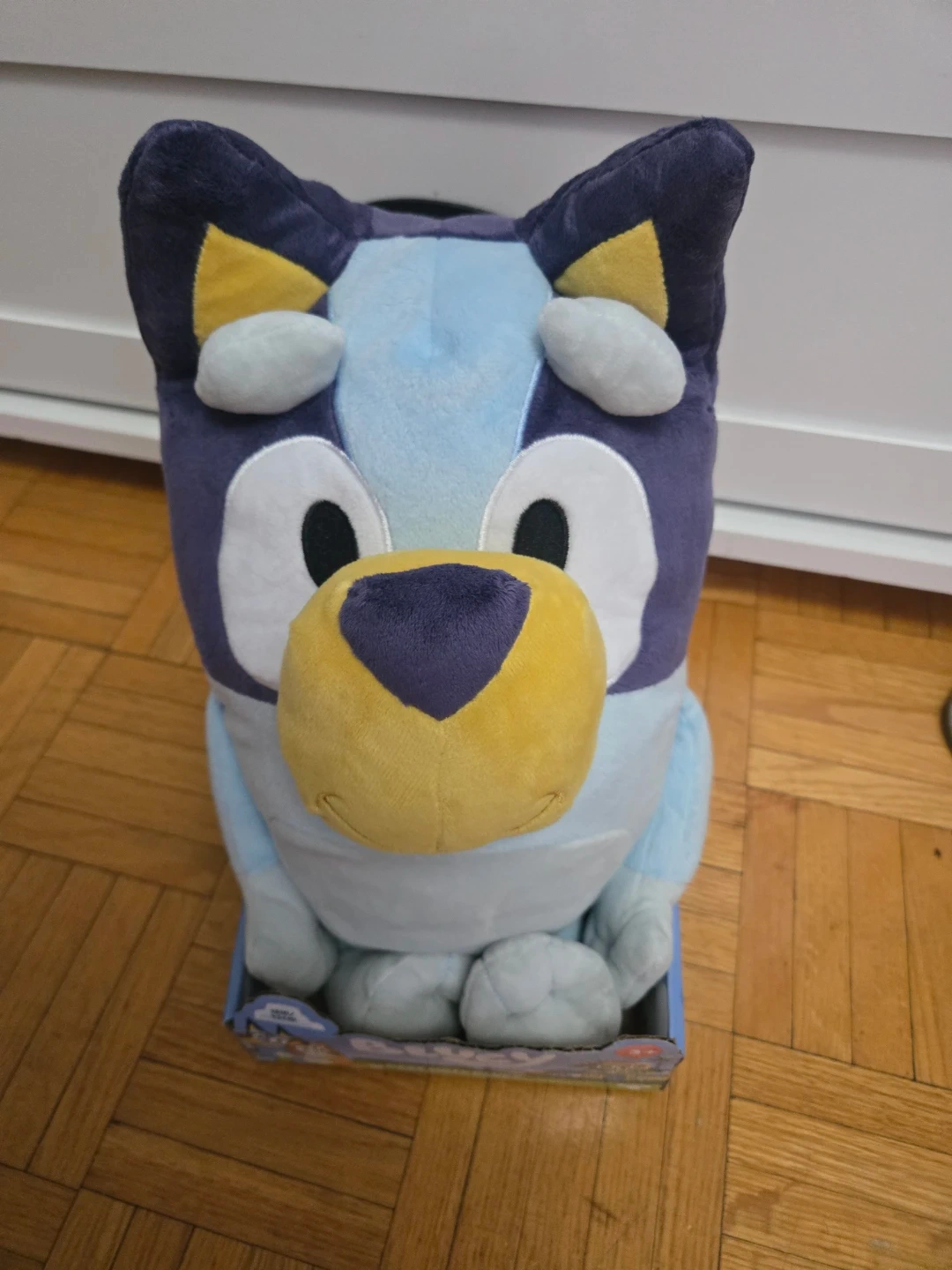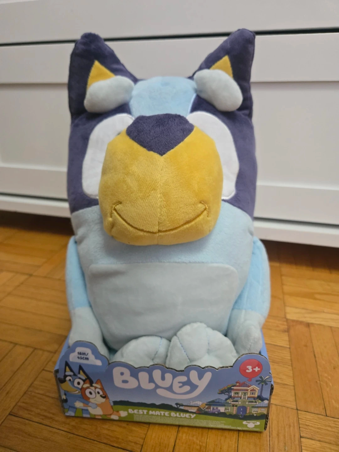 This is the Bluey Best Mate plush toy. It's 18 inches or 45 cm tall. It's suitable for kids aged 3 and up!
