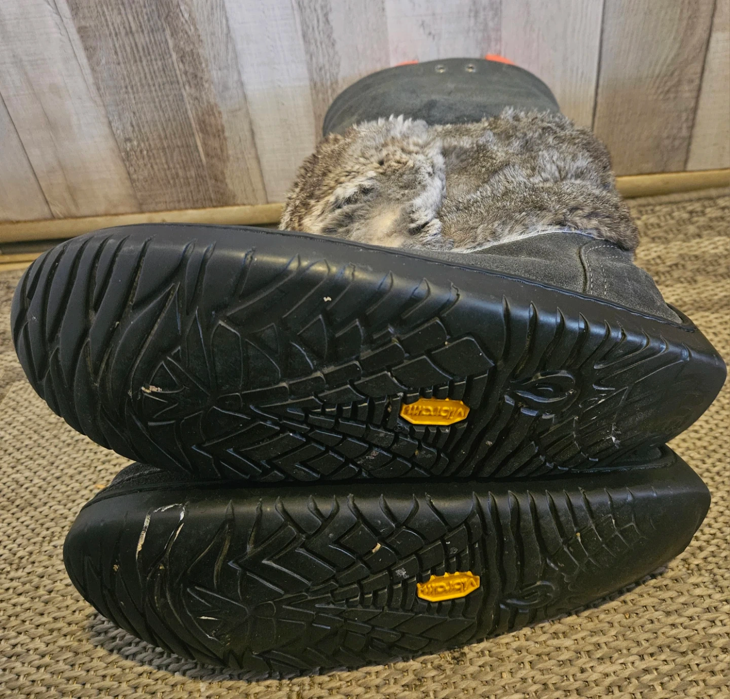Inside fur on inner left side has some small areas of fur patches missing. price reduced to reflect. This can be fixed. Refer to last two pictures.