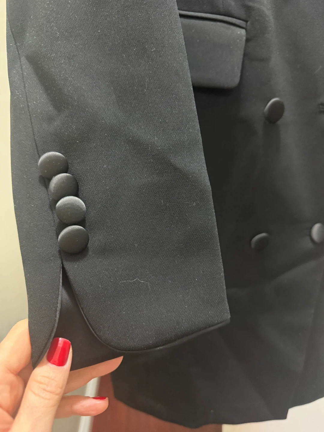 Very stylish and versatile – can be worn as a dress or blazer-style. Size M, it can also work for S.