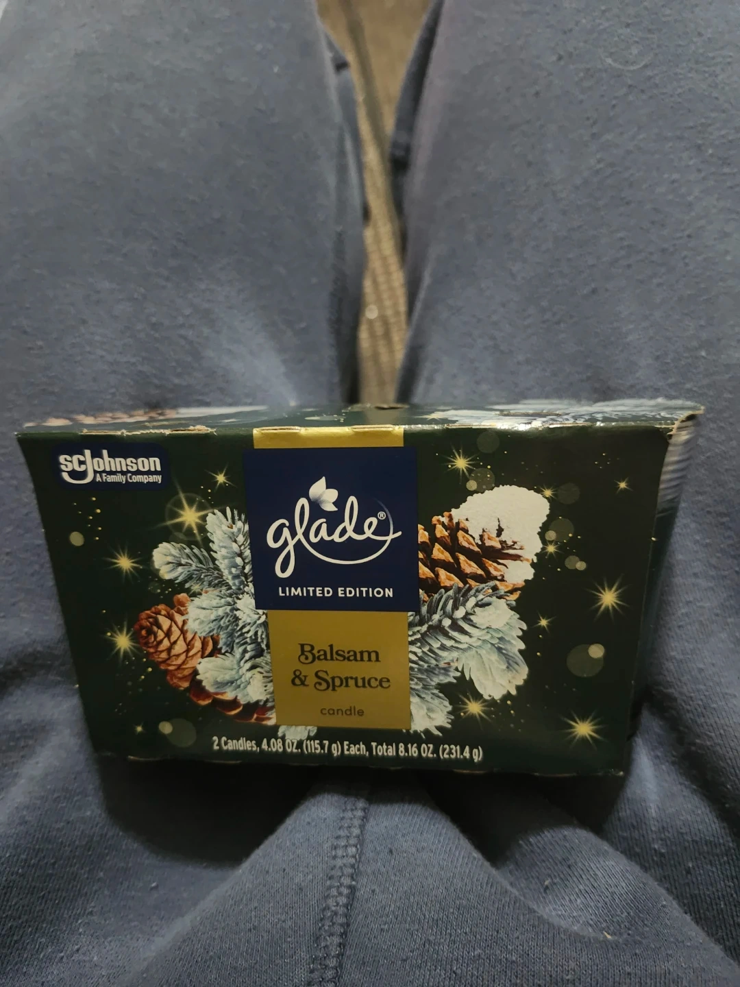 Selling a Glade Limited Edition Balsam & Spruce candle. It comes with 2 candles, each 4.08 oz (115.7g), totaling 8.16 oz (231.4g). The candle is in its original packaging. Perfect for creating a cozy atmosphere!