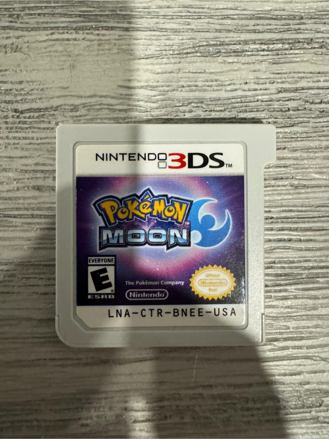 This is the Pokemon Moon game for the Nintendo 3DS. It's rated E for Everyone by ESRB. The game is from The Pokémon Company.