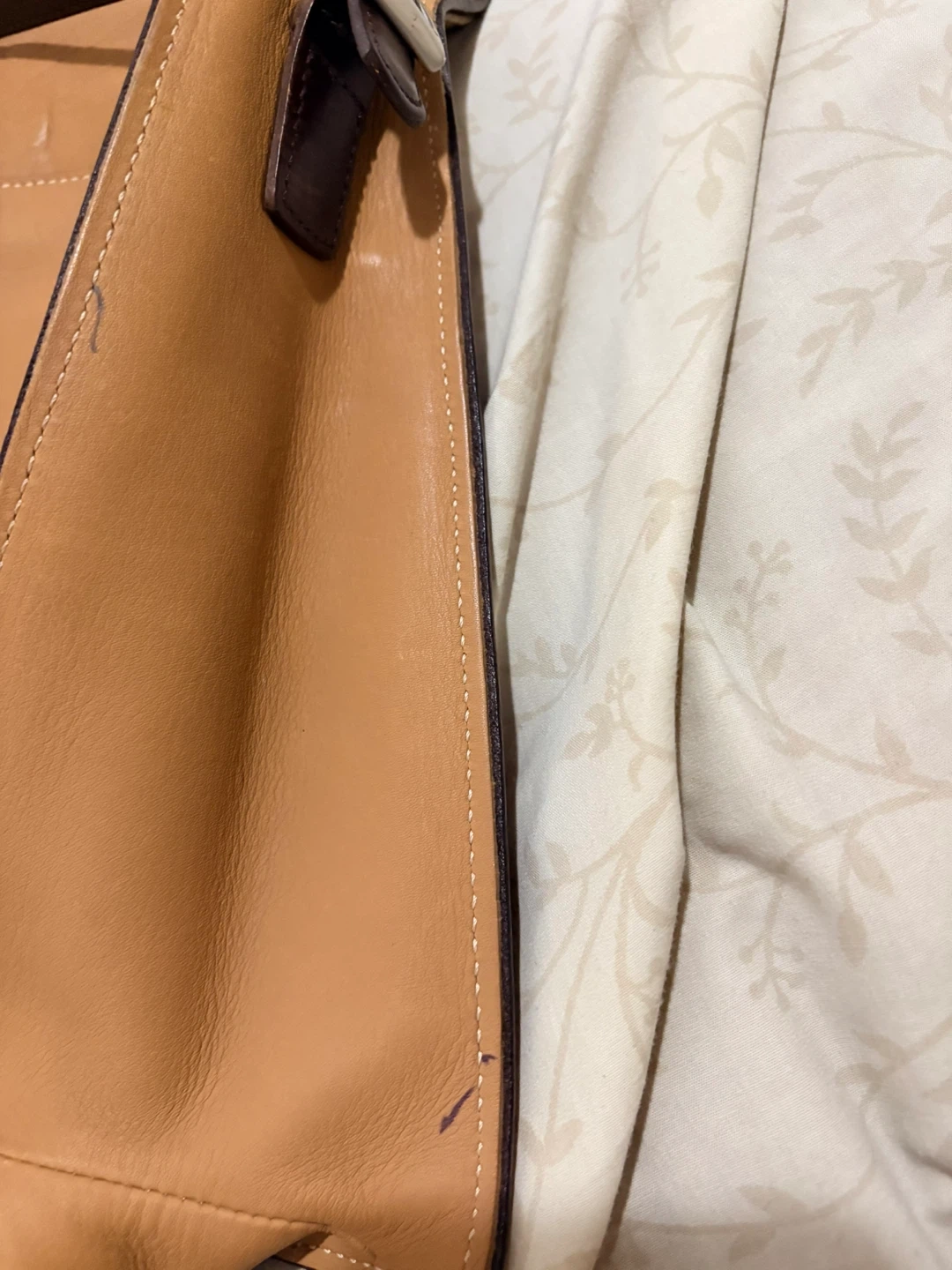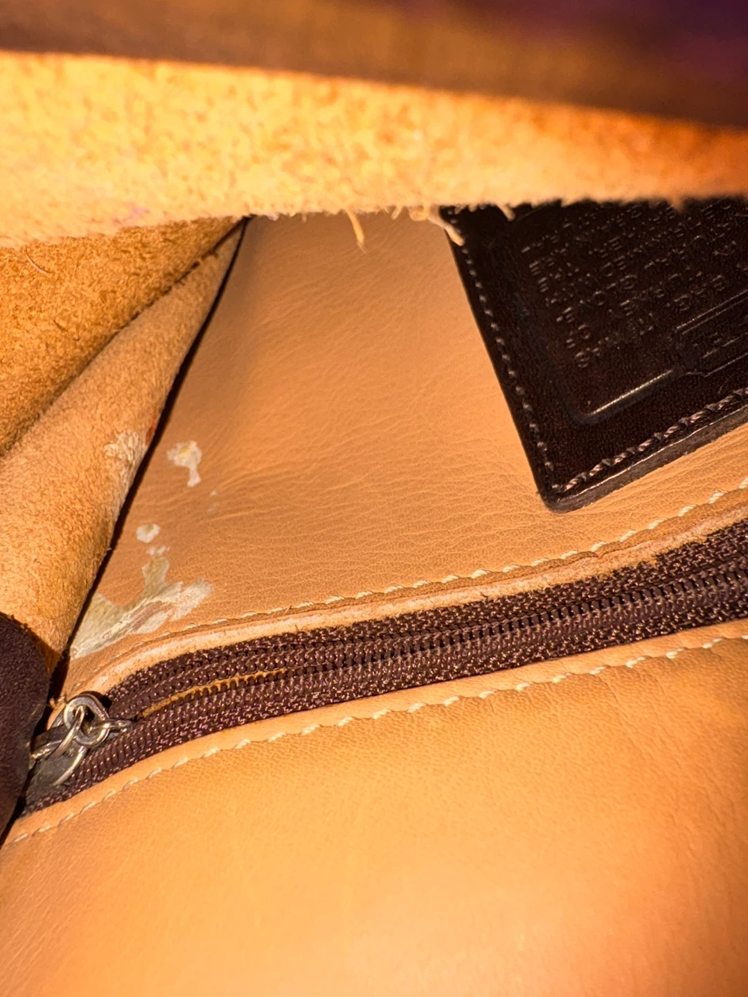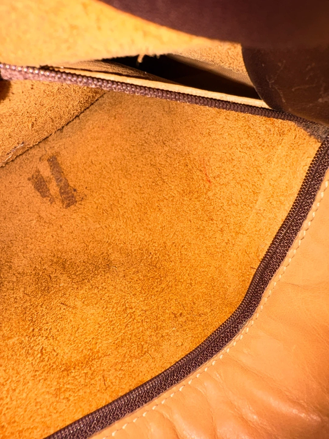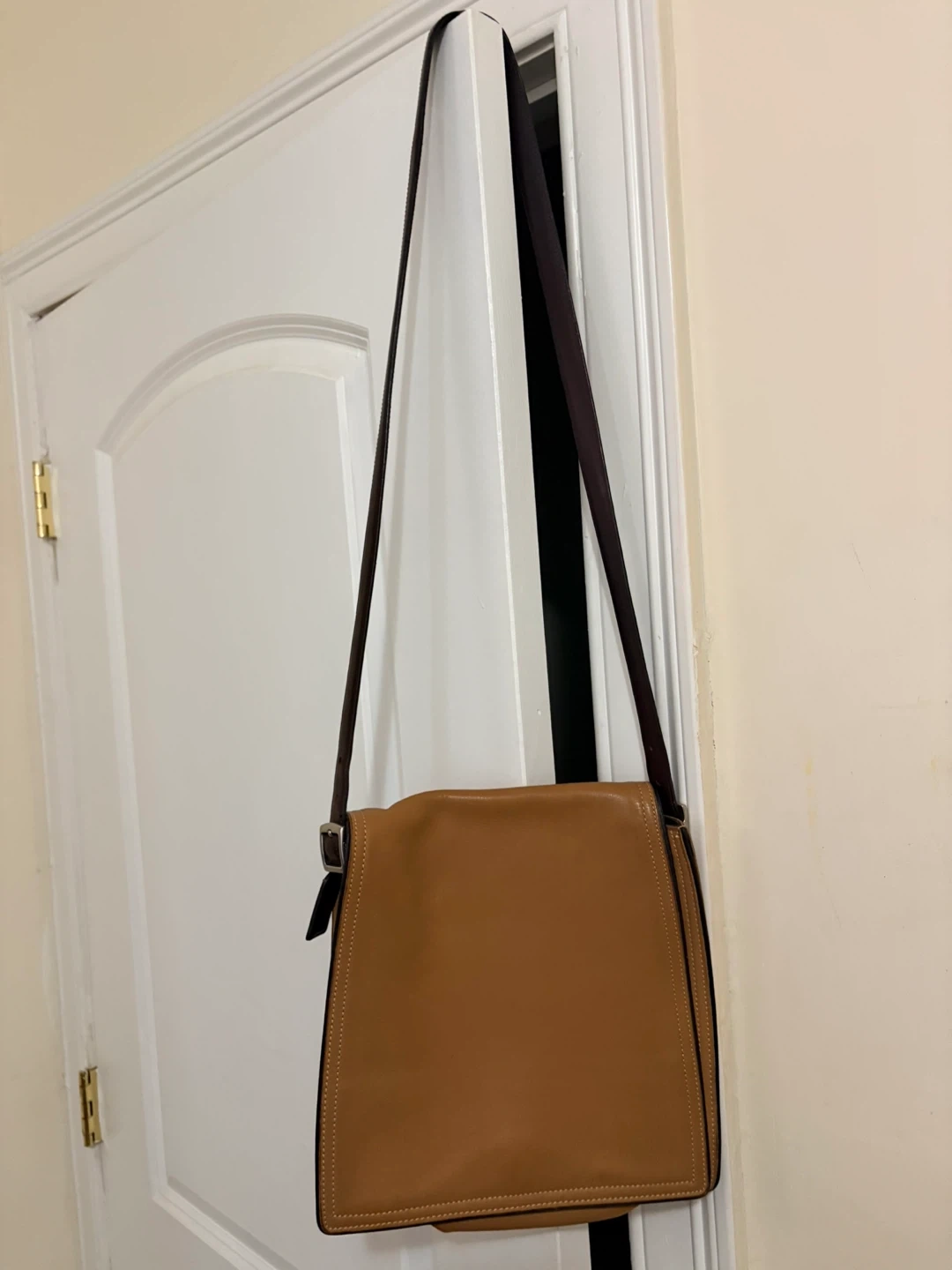 This is an authentic vintage Coach bag handcrafted in Turkey from Coach’s 1999 collection. This Legacy Monterey Flap bag (Style #6147) is handcrafted from premium, natural glove-tanned cowhide with Italian bridle leather trim. Classic structured messenger-style silhouette. In good used-vintage condition with two pen marks on the side of the bag and minor stains inside that can easily be cleaned. See pics