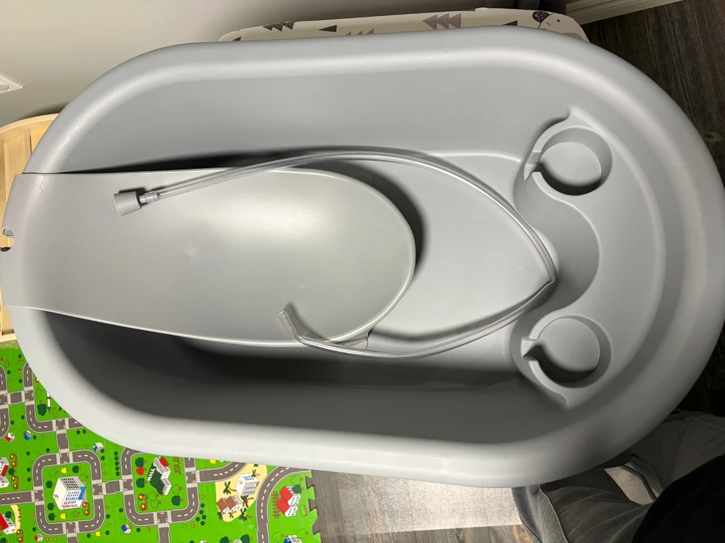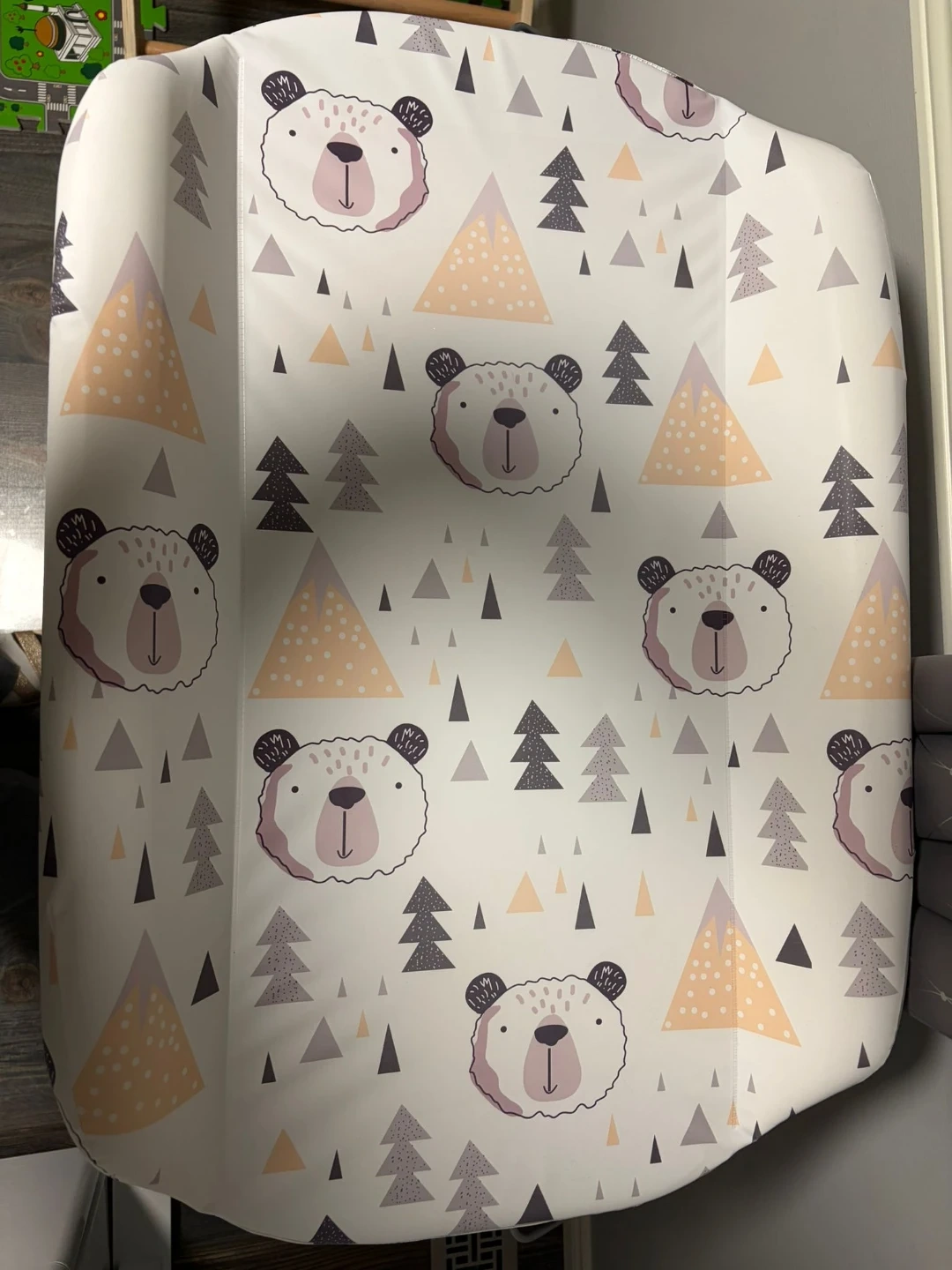 This Baby Joy bath station comes with a changing pad featuring a cute bear and mountain design. It includes a bath tub with a drain hose. This is great for keeping baby clean and comfortable during bath time!