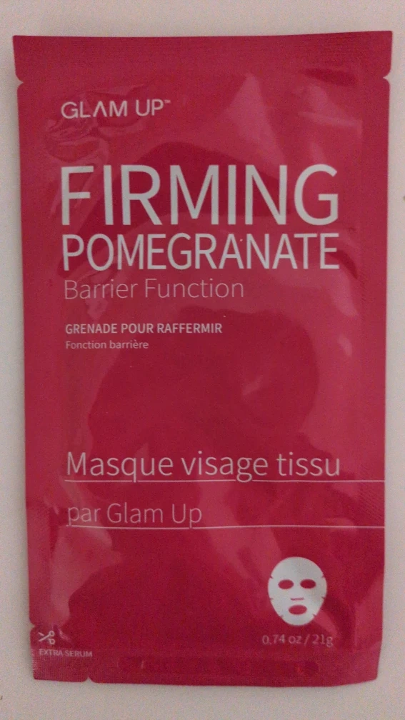 358I'm selling a Glam Up Firming Pomegranate Barrier Function face mask! It's a masque visage tissu, perfect for a little self-care