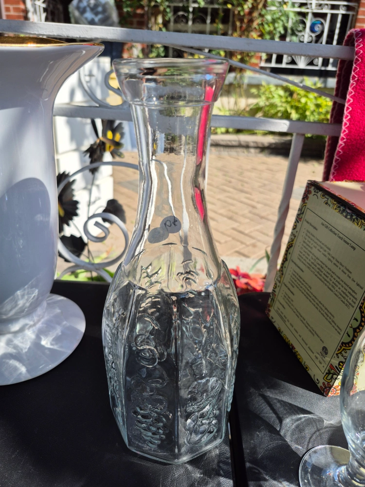 Selling a lovely glass carafe. It features a beautiful grape design around the base. Perfect for serving water or wine at your next dinner party! no cracks or chips. pickup location is Bathurst and Dundas street area on Euclid avenue.