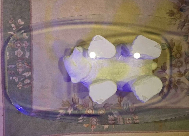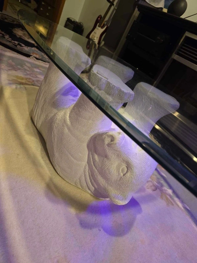 5Oval-shaped luxurious glass coffee table with very thick beveled, tempered, glass. Ceramic-type robust base to support glass top. Very good to excellent condition. Classy and Simple in a beautifully finished white base finish. Compliment any decor $175 For Sale By: Owner