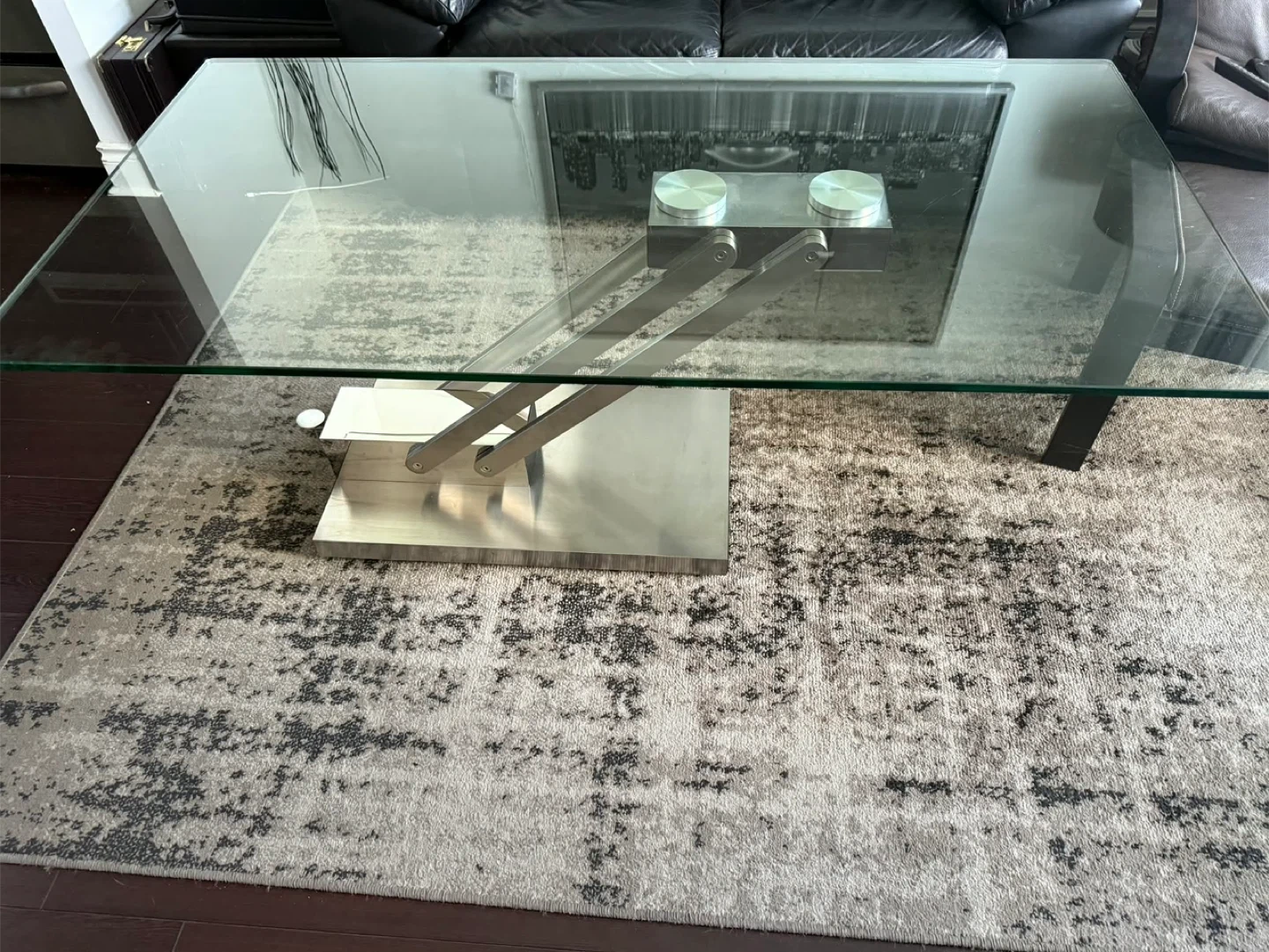 10Selling a modern glass coffee table with a unique silver base! It's in great condition and would look fantastic in any living room. The sleek design adds a touch of elegance to your space. Adjust to different heights