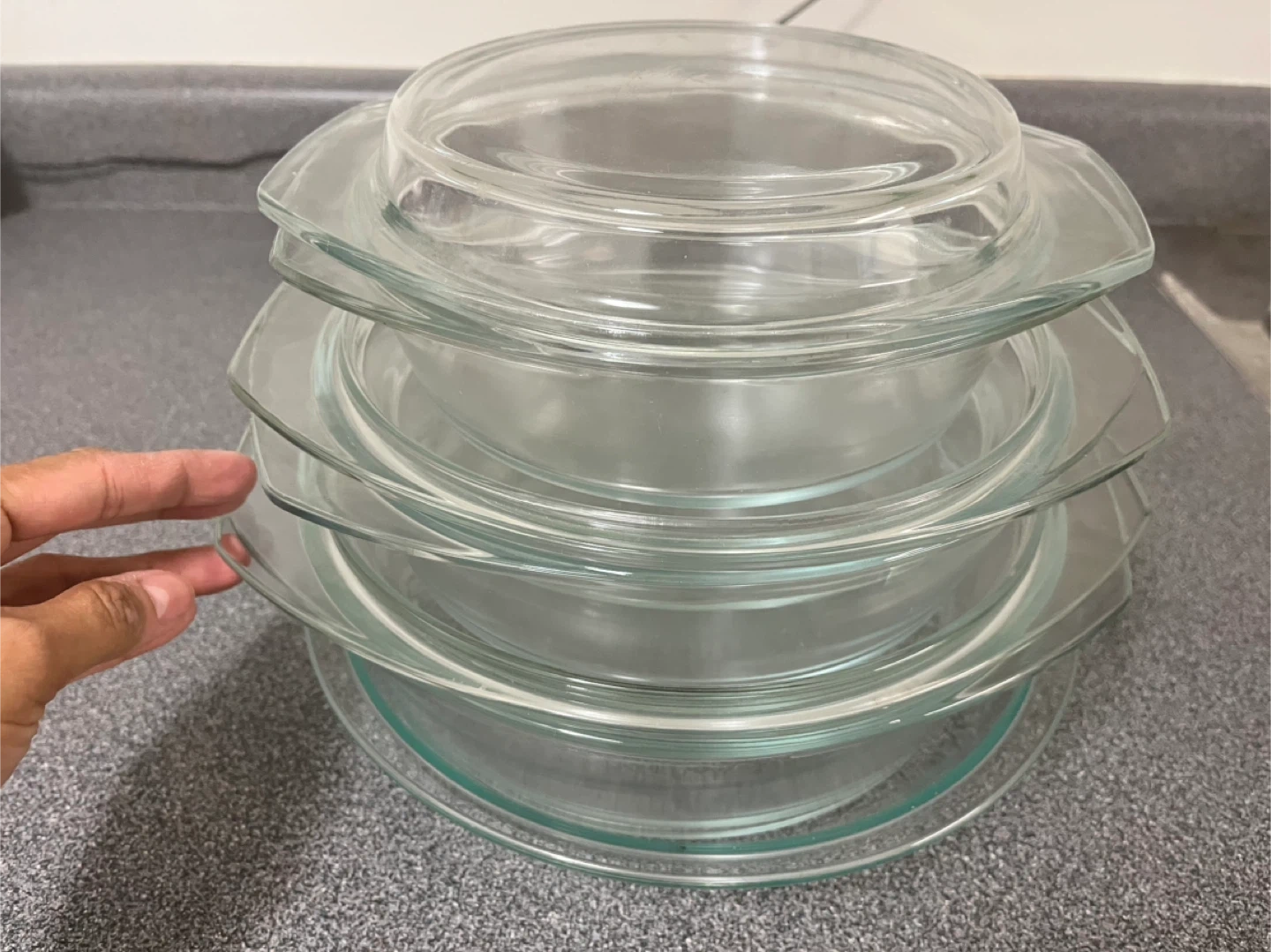 10Selling a set of glass dishes, each with its own lid! They're in absolutely new and in great shape and ready for your next get together or using simply at home dinners. Includes a total of 6 pieces.