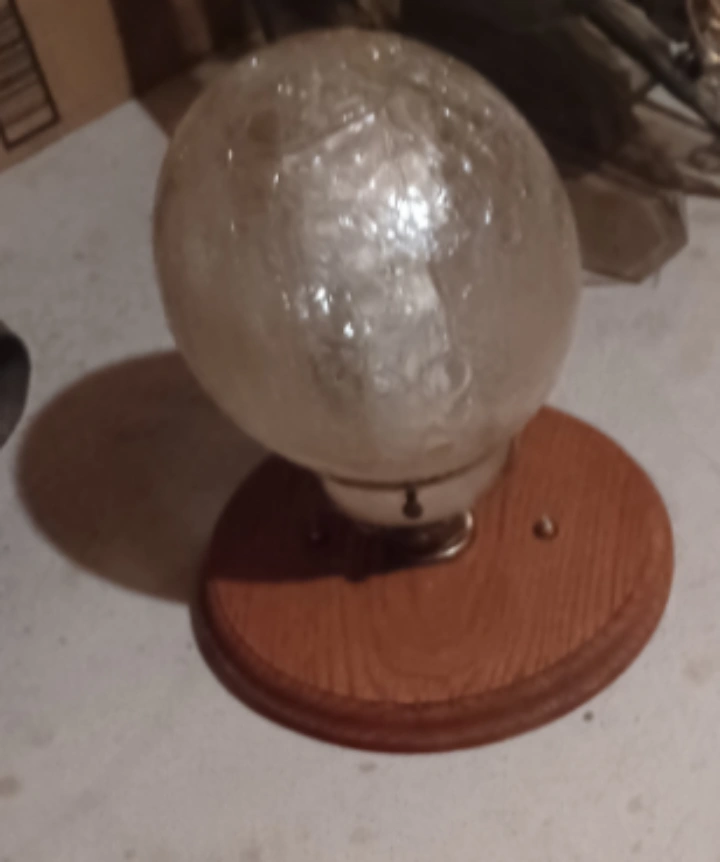 33A frosted glass globe light fixture with a wooden base. In great condition and works well.
