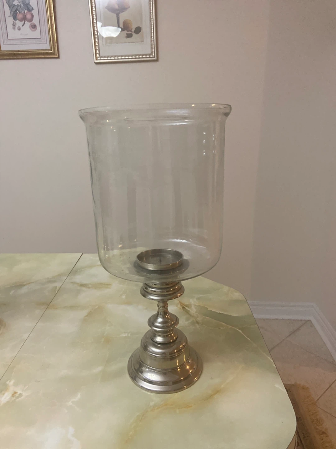 Selling a glass hurricane candle holder. It's in great condition and perfect for adding a touch of elegance to any room