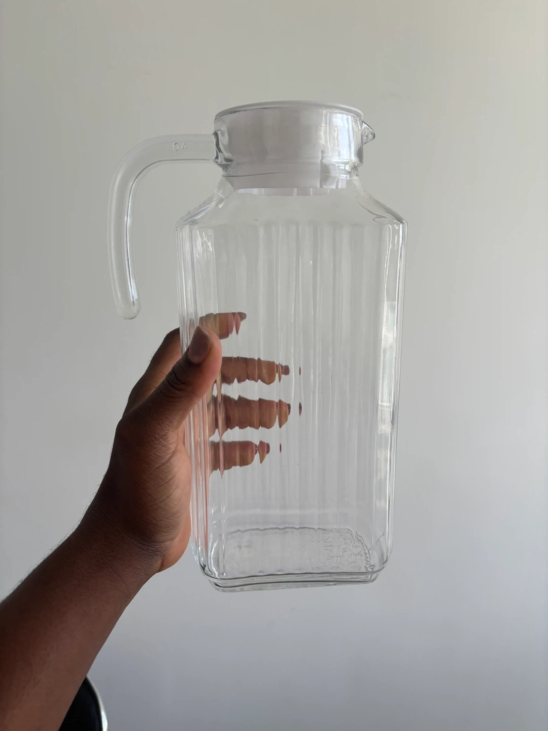 Selling a clear glass pitcher. It's in great condition and ready for your favourite beverages. Perfect for summer gatherings or everyday use!