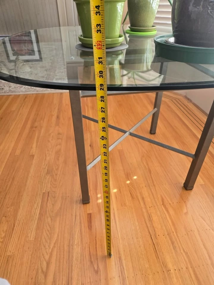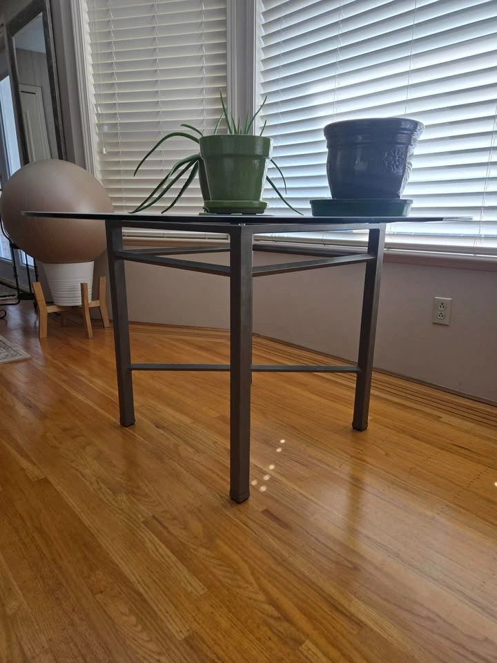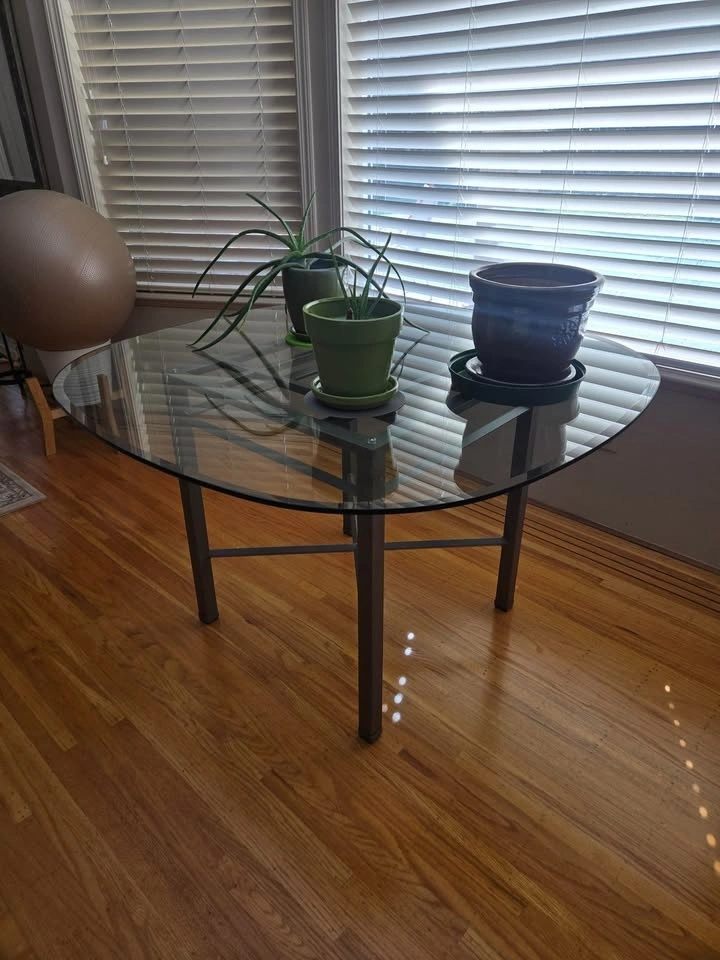10Like new dining table with glass top. Steel base is very sturdy! This table is in excellent condition and the glass top does not have lots of scratches typical of a glass table. dimensions are 4ftx4ft and 29" tall Inlaws are downsizing, and no longer need it. Pick up in Ladner, Delta