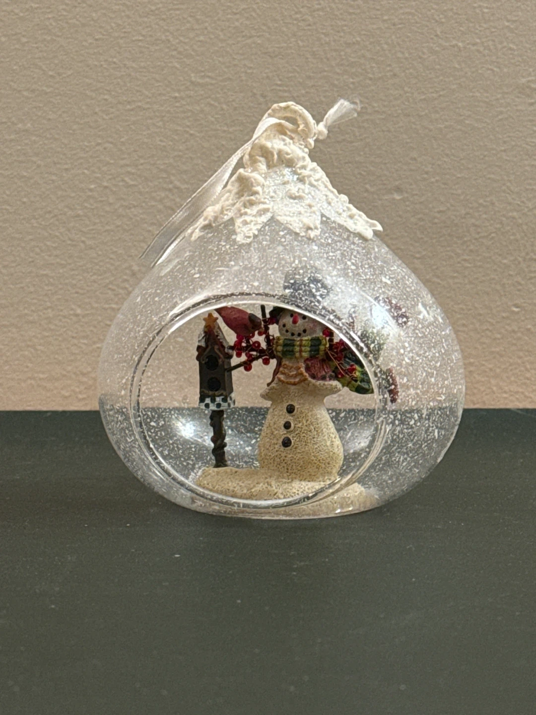 70Add a touch of winter charm to your home with this lovely snowman ornament! It features a cute snowman inside a clear glass bauble, perfect for hanging on your tree or displaying on a shelf during the holiday season 10cm x 10cm x 10cm