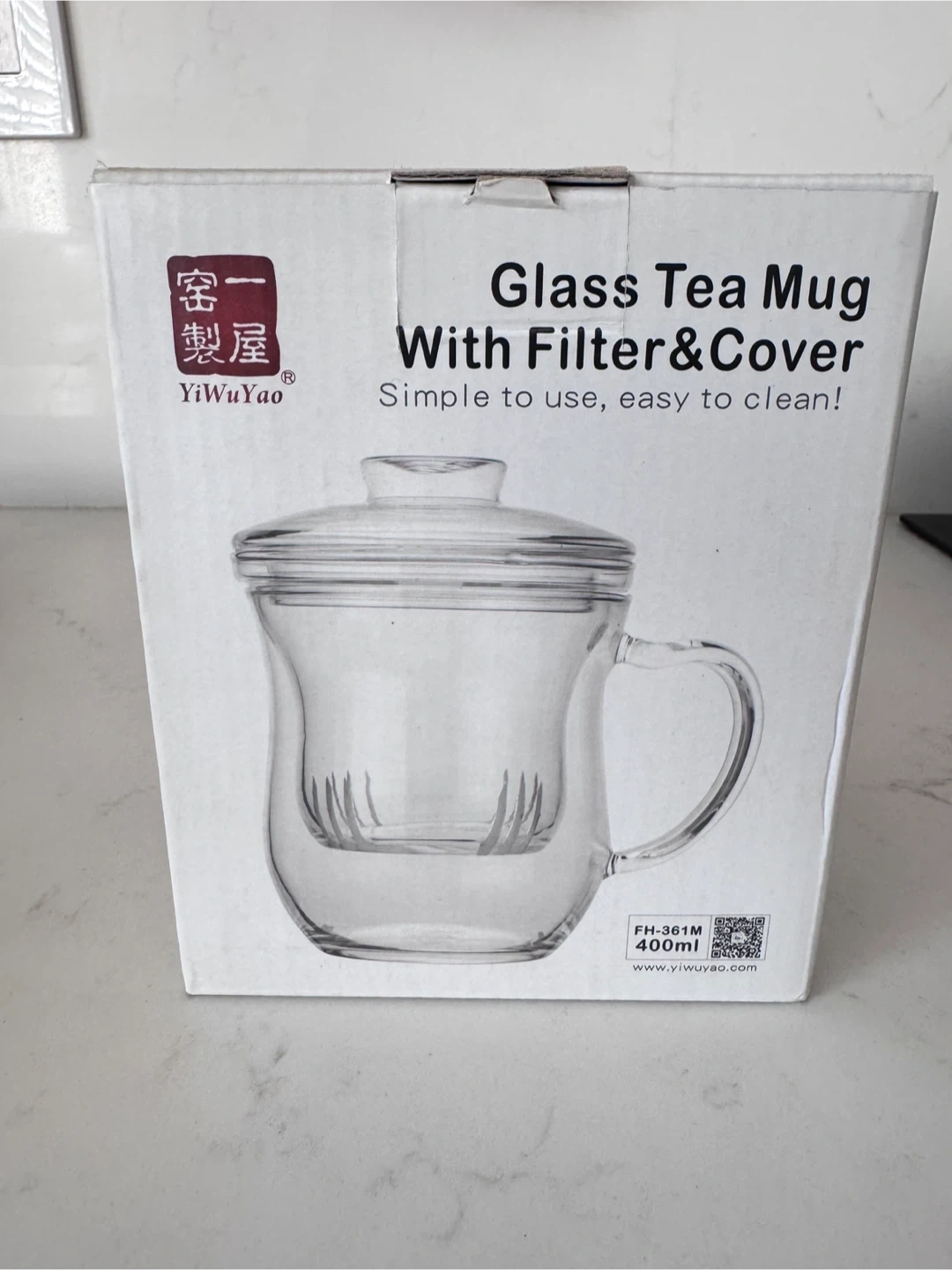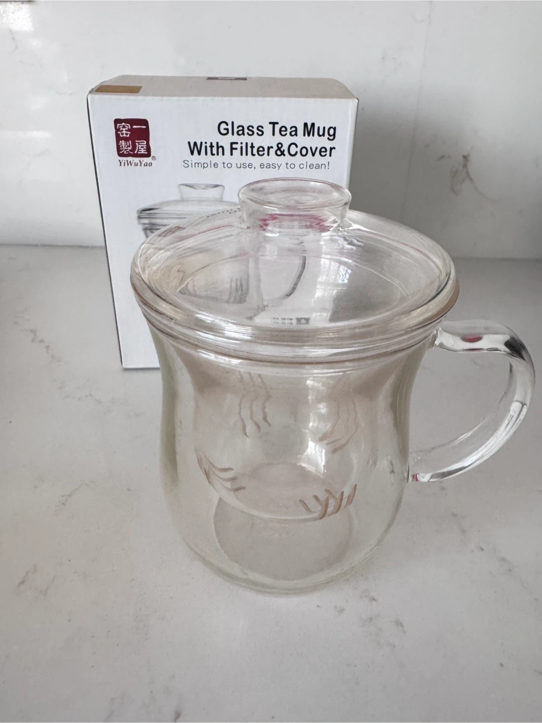 Selling a glass tea mug with filter and cover! It's simple to use and easy to clean. The mug has a capacity of 400ml. It also comes with the original box!