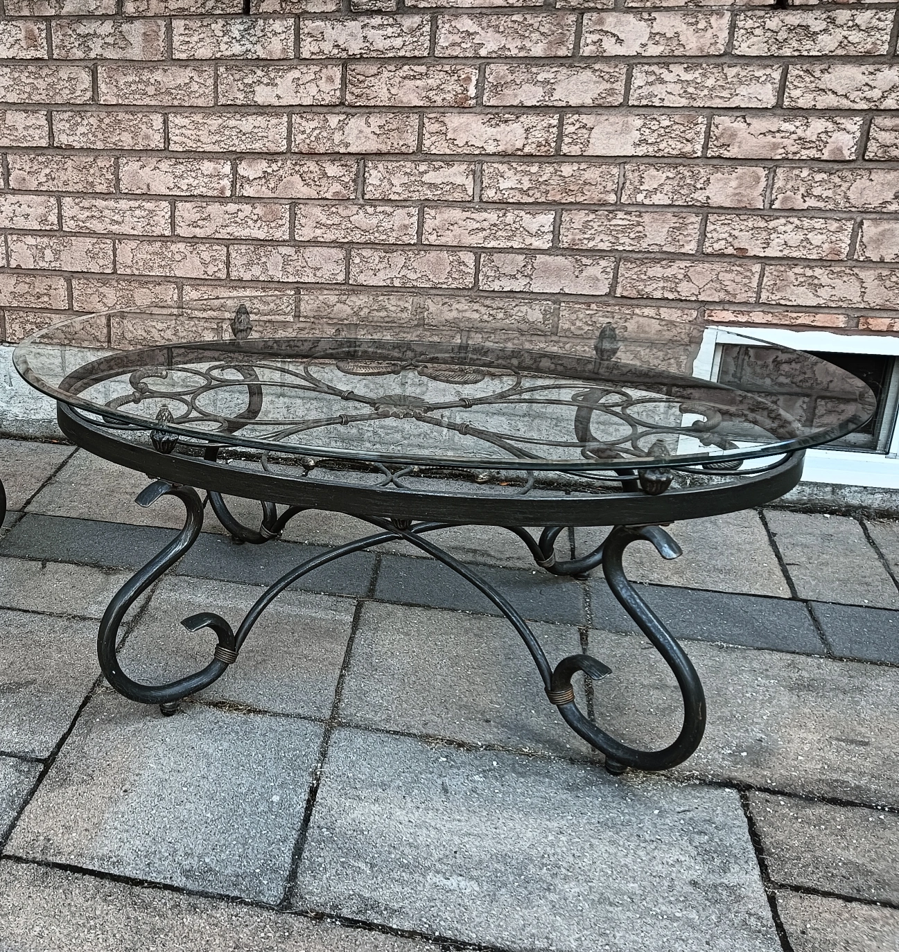 Glass coffee table with a side table