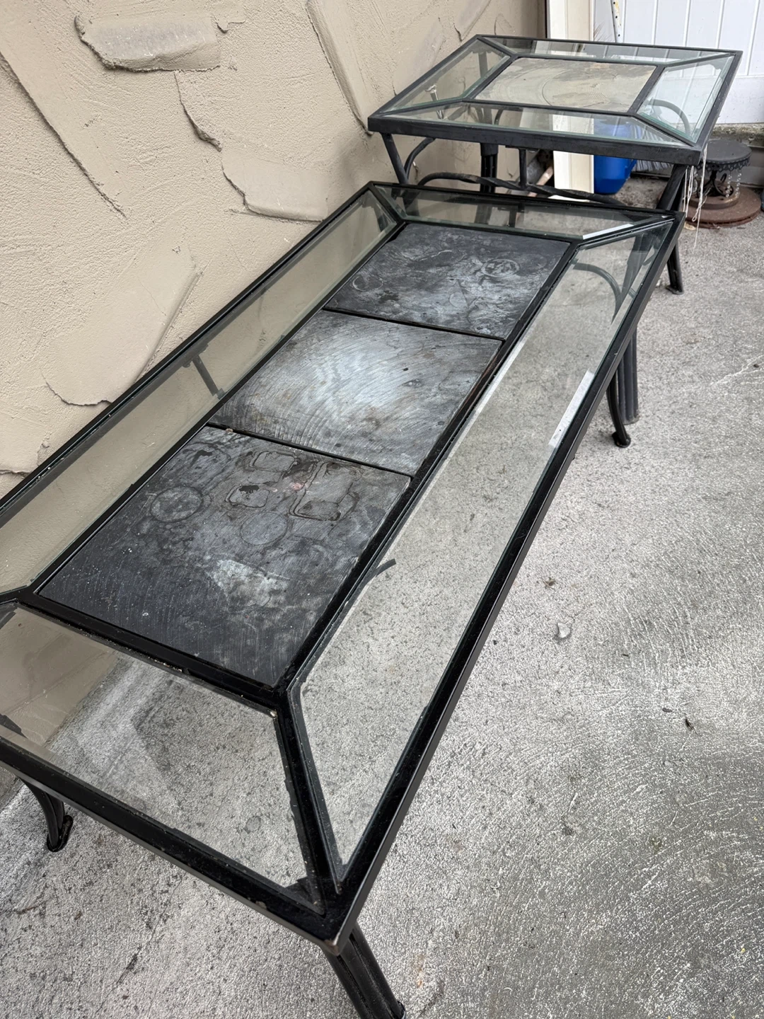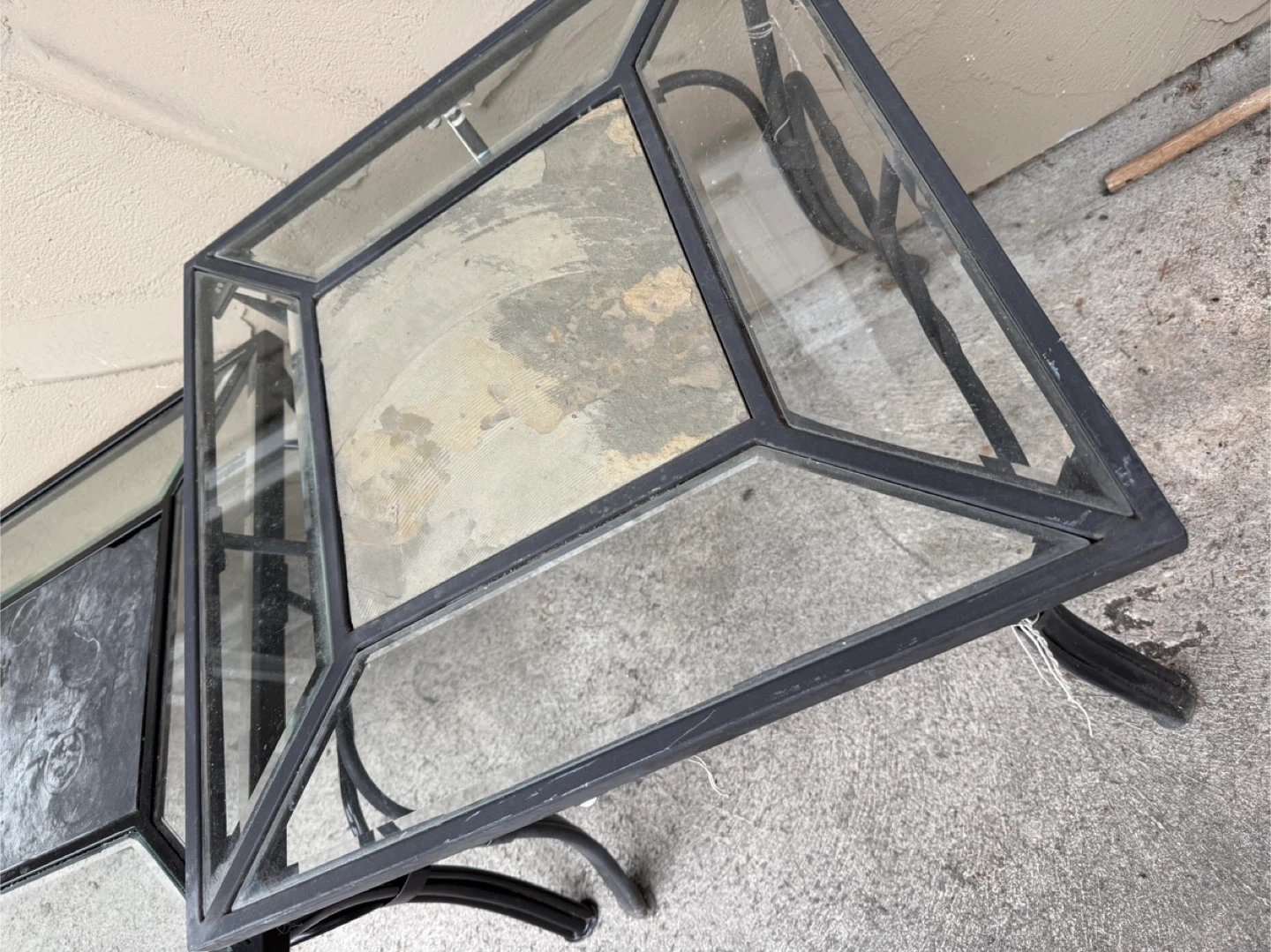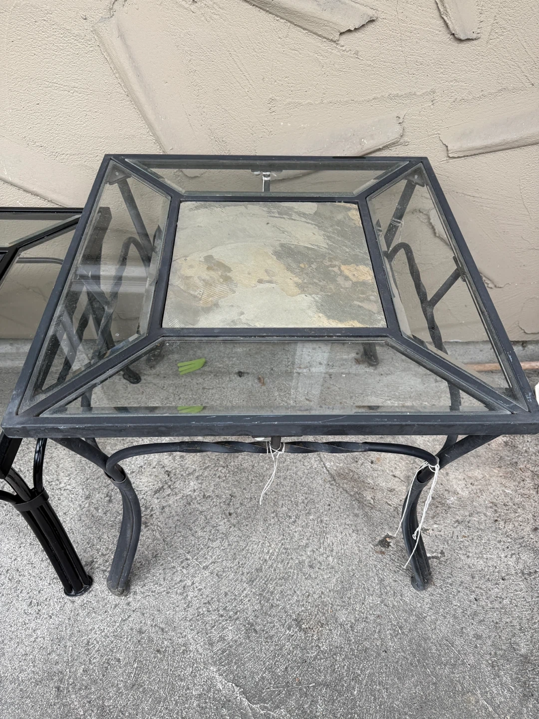 24Selling a set of glass-top coffee tables with black metal frames. They have a unique geometric design that would look great in any living room or patio. Perfect for adding a modern touch to your space!