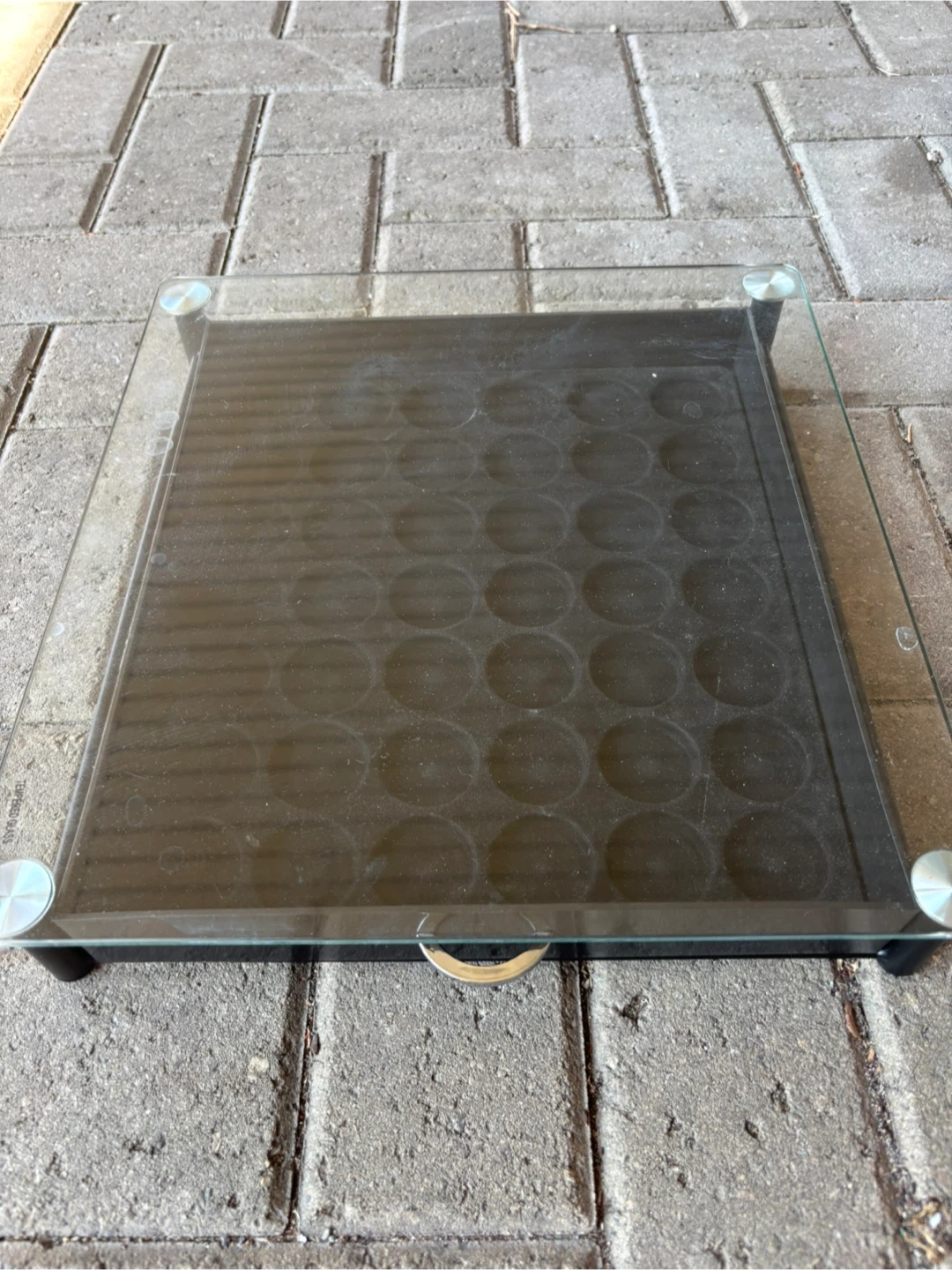 Selling a unique coffee table! It features a glass top and a drawer with a built-in cupcake mold. Perfect for adding a touch of whimsy to your living room or kitchen. The table is in good condition and ready for a new home