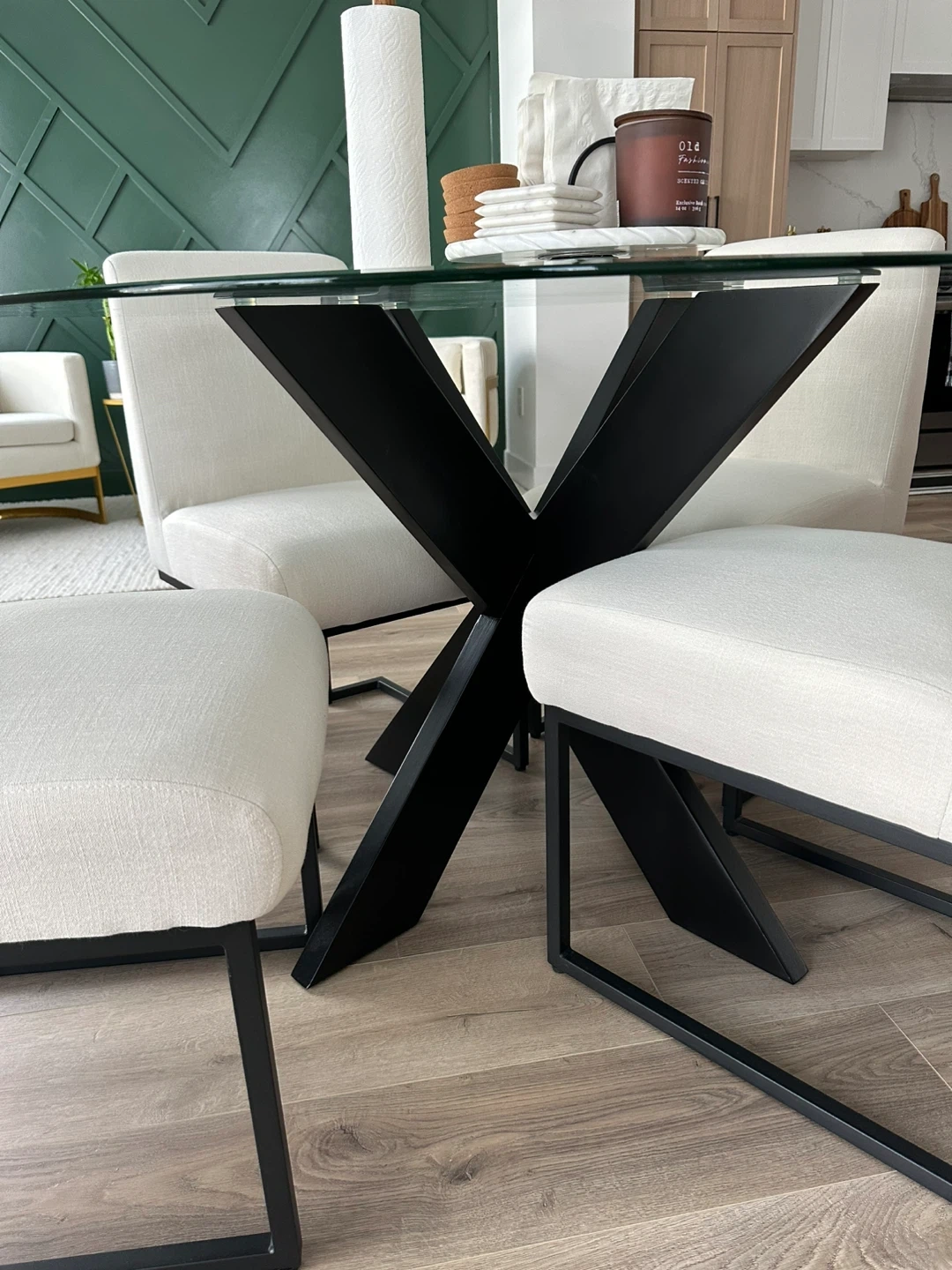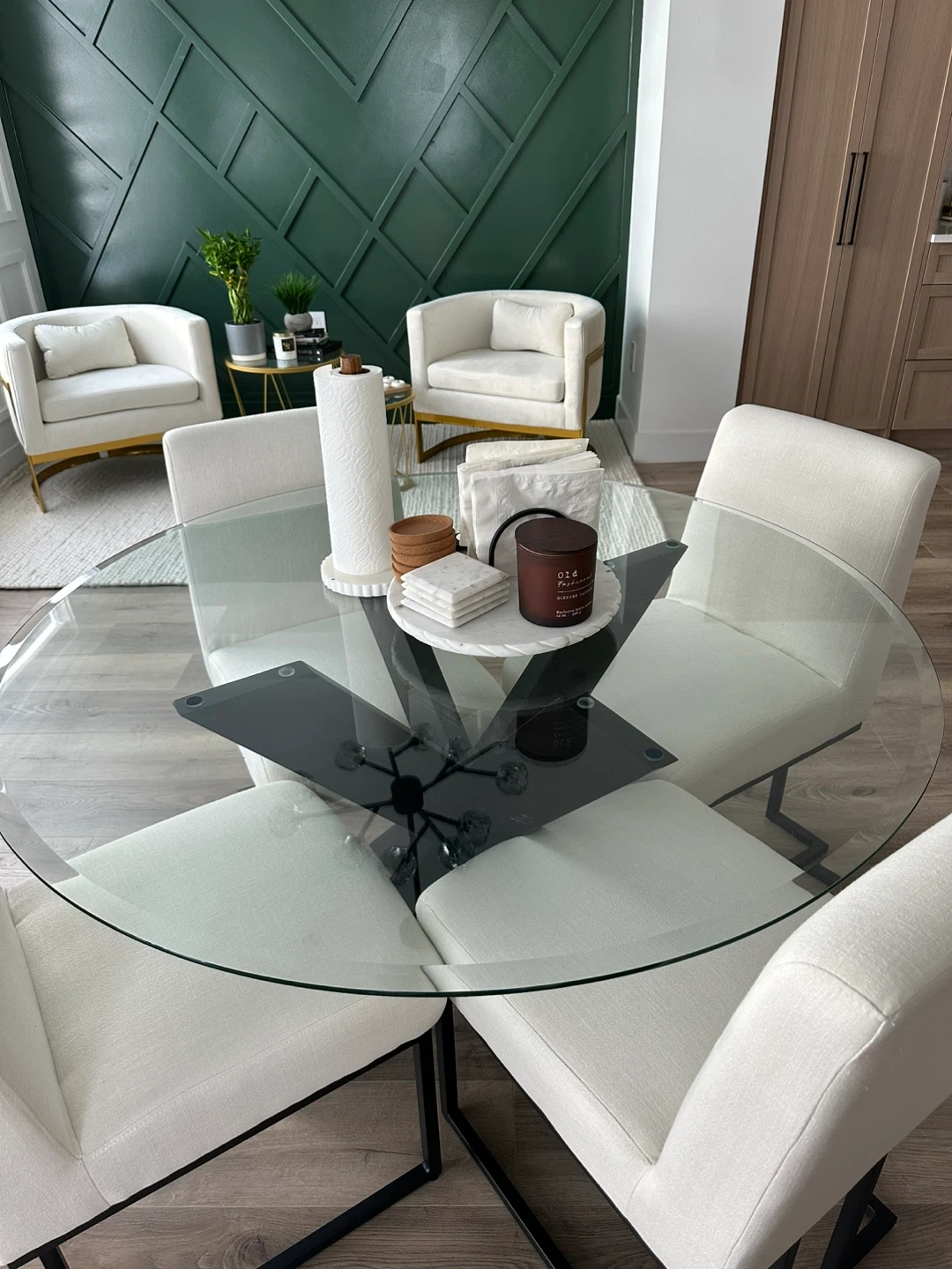 Elegant Dining Set – 6 Velvet Chairs + Tempered Glass Table