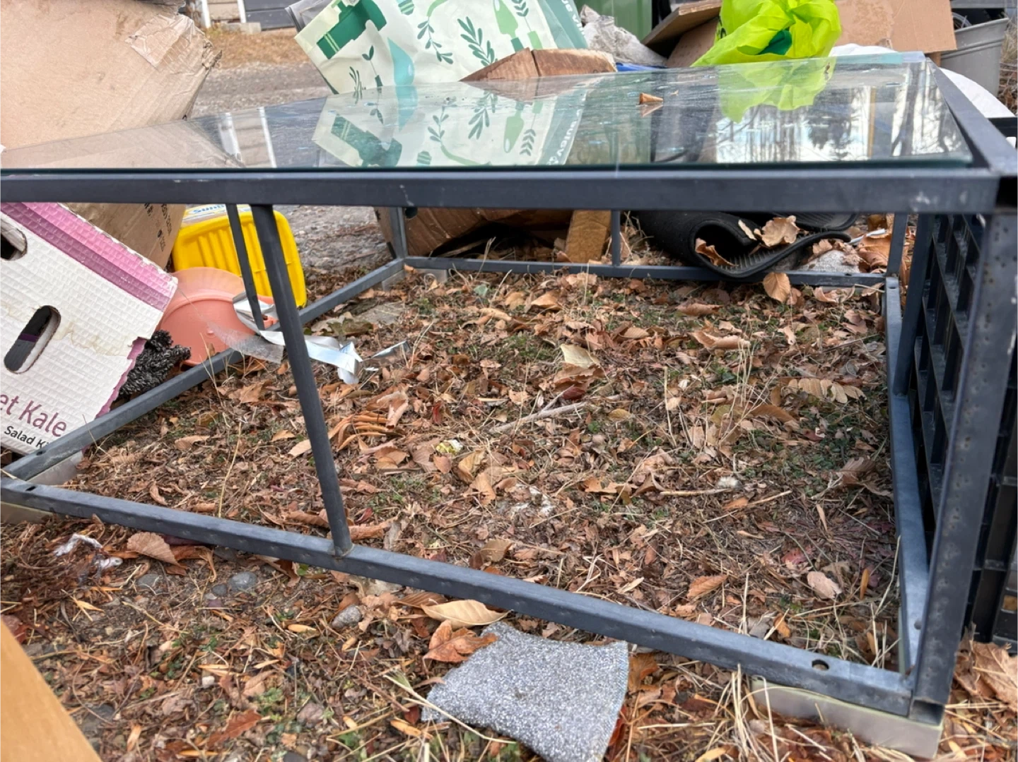 105Selling a glass top table with a metal frame. It's in good condition and would be great for a variety of uses. The glass is clear and the frame is sturdy. Perfect for a DIY project or as a base for a new table top! Pick up at Morley trail NW