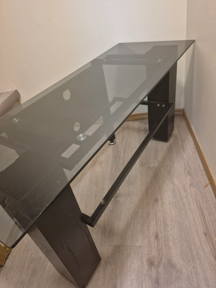 15it is a glass 2 tier table but the second glass on the bottom was already broken when we bought it a few years ago, otherwise it is still in great condition! we have no room for it in our new home. We paid $150 for it but we are asking $120 or best offer for the table!