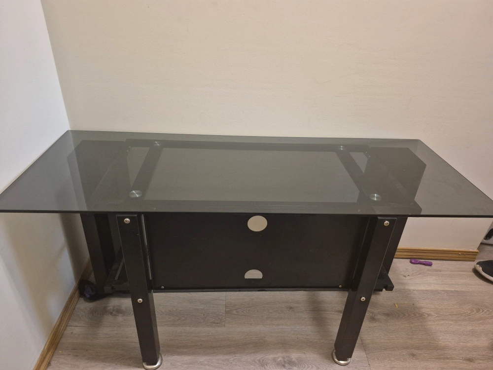 it is a glass 2 tier table but the second glass on the bottom was already broken when we bought it a few years ago, otherwise it is still in great condition! we have no room for it in our new home. We paid $150 for it but we are asking $120 or best offer for the table!