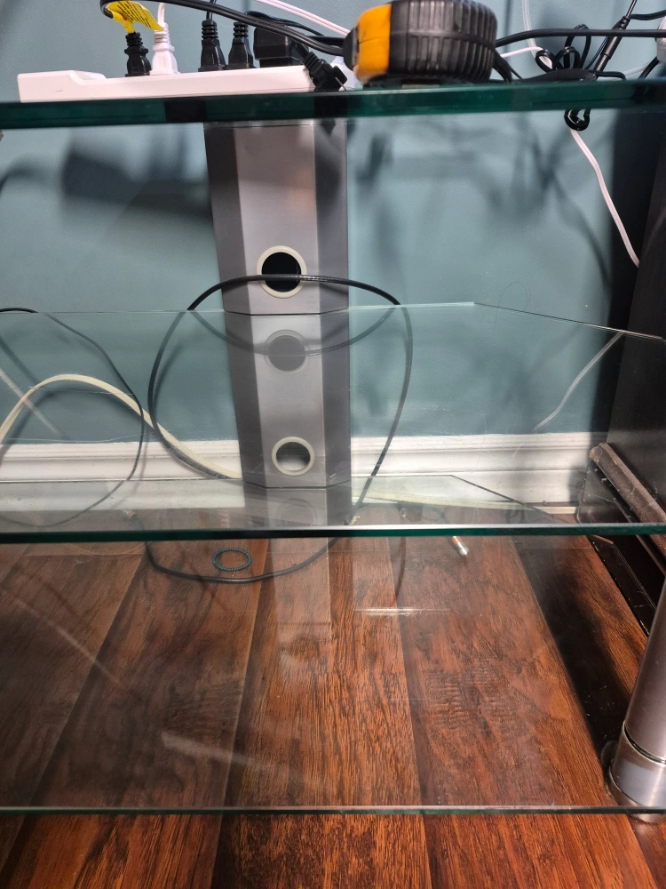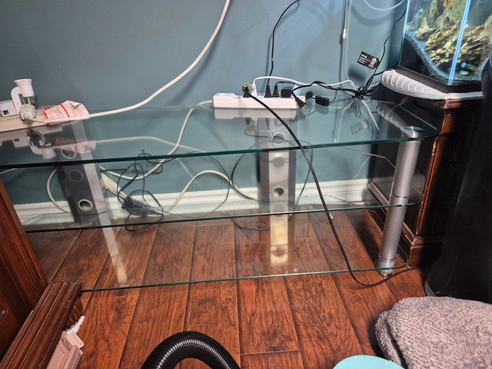 185Selling a glass TV stand. It has a sleek design and is in good condition. It measures approximately 5 feet in length, 18" in width and 20" in height almost no scratches with all parts perfectly functional extention cords not included pick up only