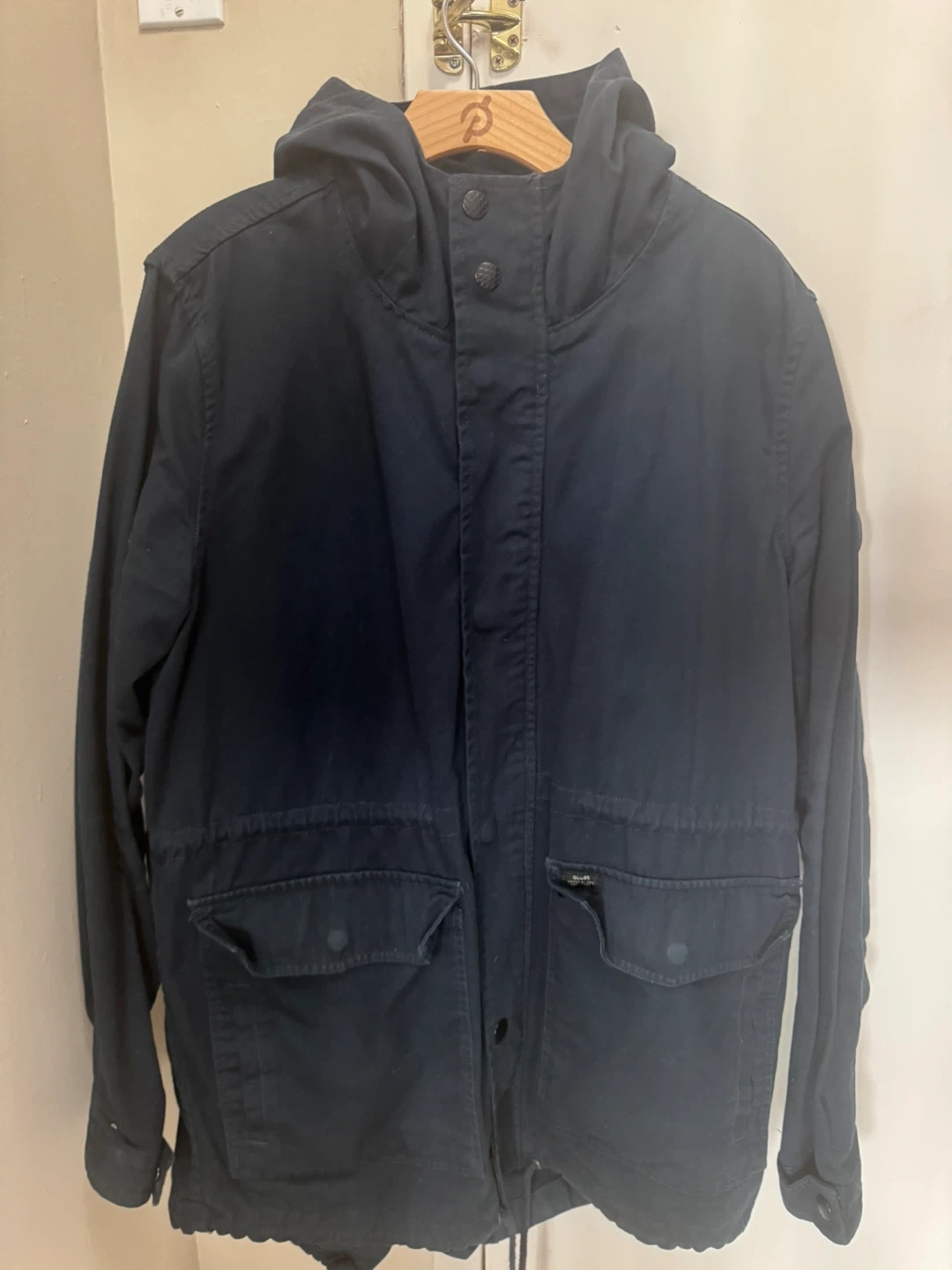 261Closet Clean UP Globe Goodstock Hooded Fishtail Mid Length Jacket | Large | Navy Blue Casual Asking $30 (obo) Very Clean Cash & Pick Up only Please