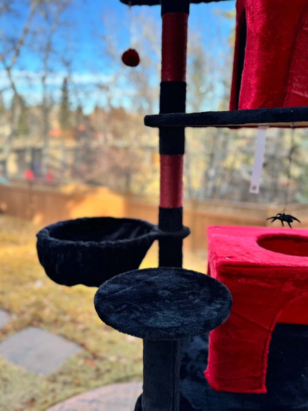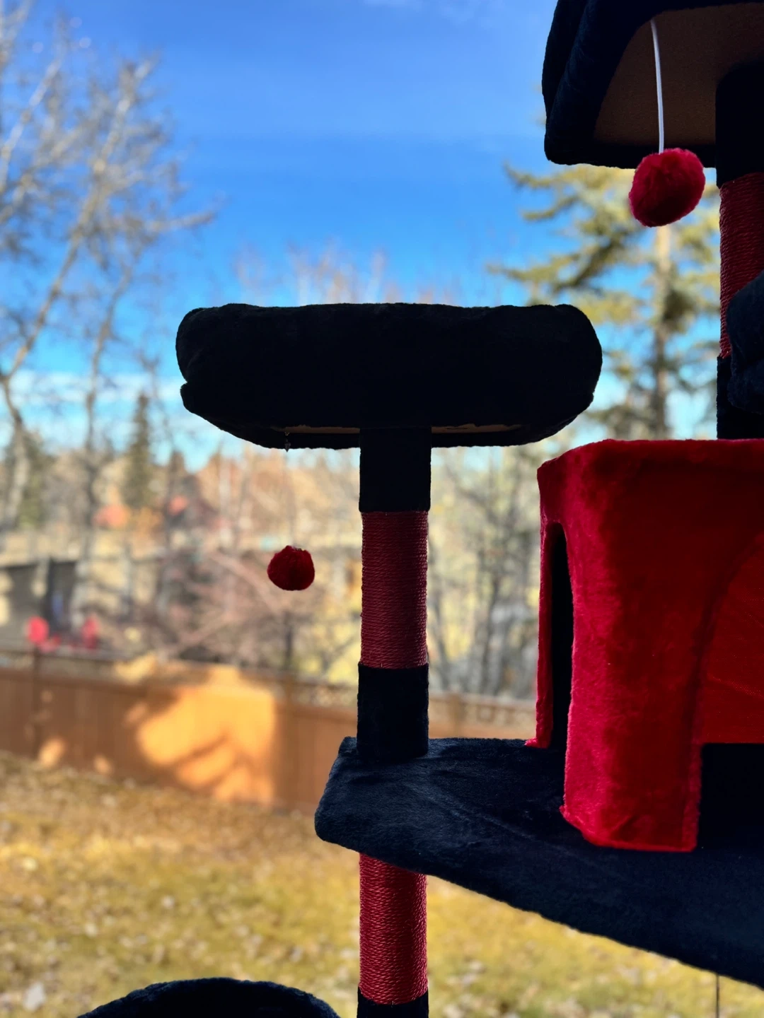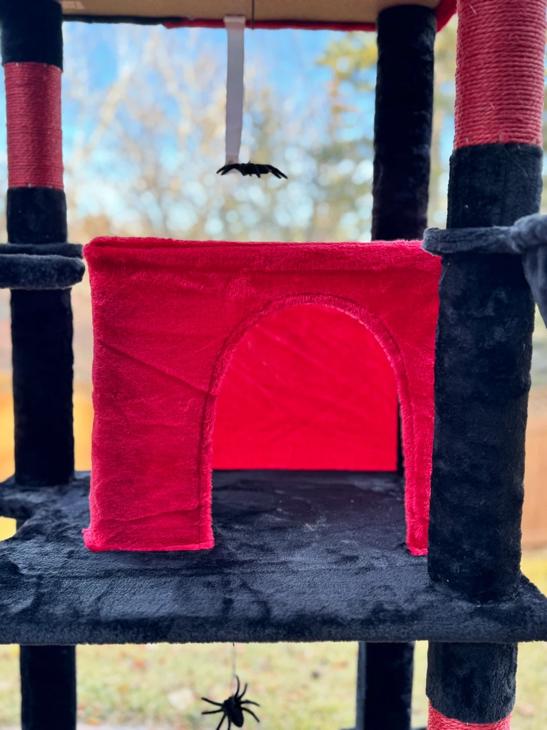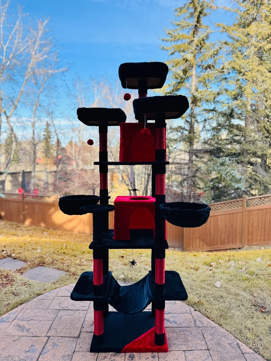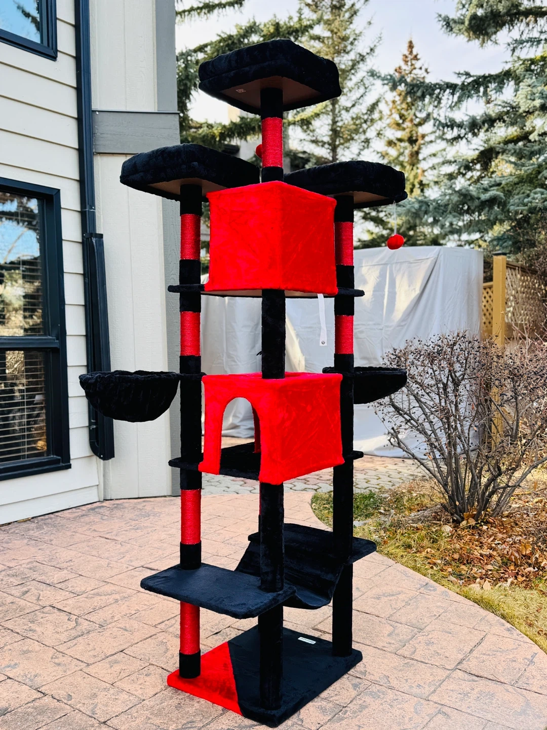 83” Red & Black Cat Tree – Bold Style Condo Tower for Large Cats