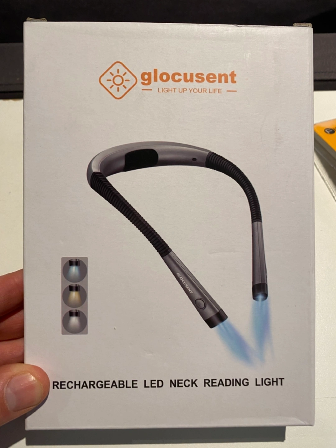 18Rechargeable LED neck reading light. Flexible gooseneck design. Three brightness settings. Portable and convenient.