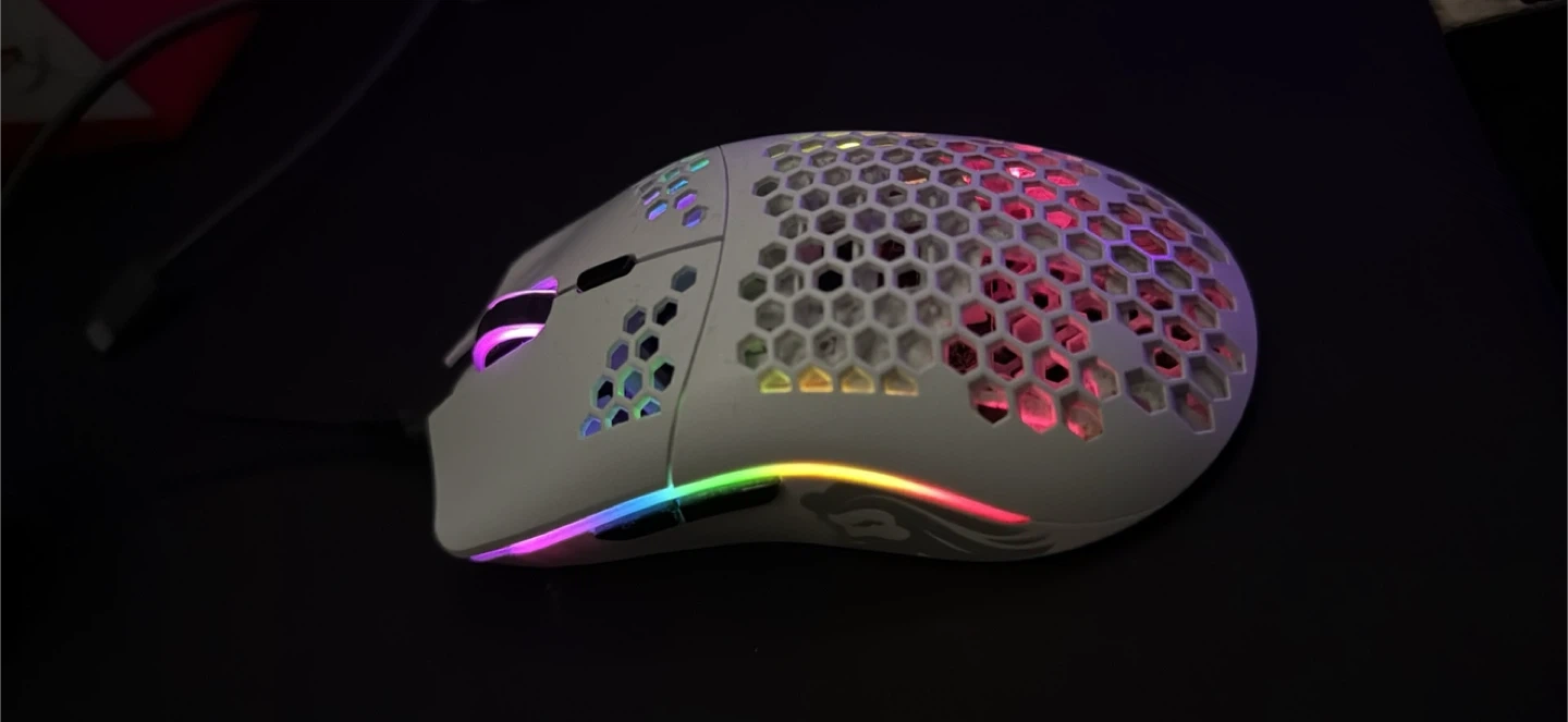 Selling a Glorious Model O gaming mouse in white! It's in great condition and ready for a new owner. This mouse is known for being lightweight and having a cool honeycomb design. Perfect for gaming!