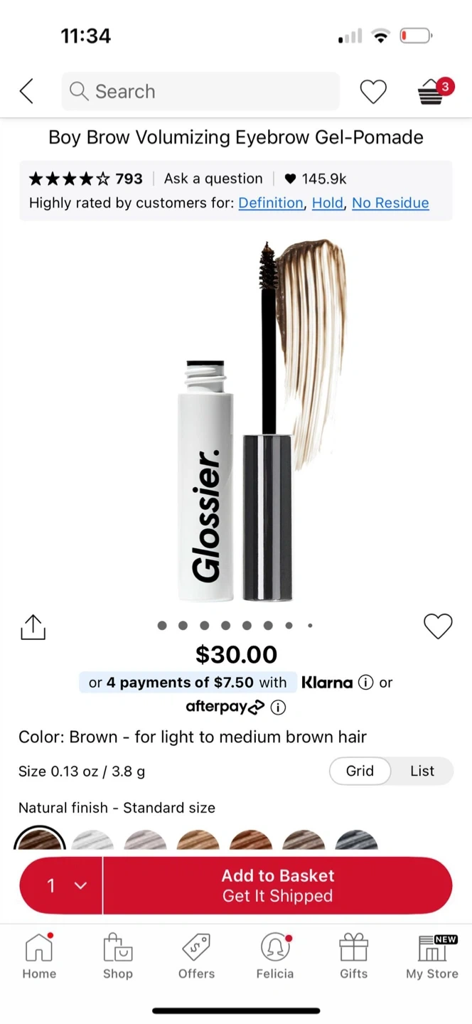 31Selling a Glossier Boy Brow in Brown. It's a grooming pomade for your eyebrows! It's size is 0.13 oz or 3.8 g. Gives a natural finish and is standard size.
