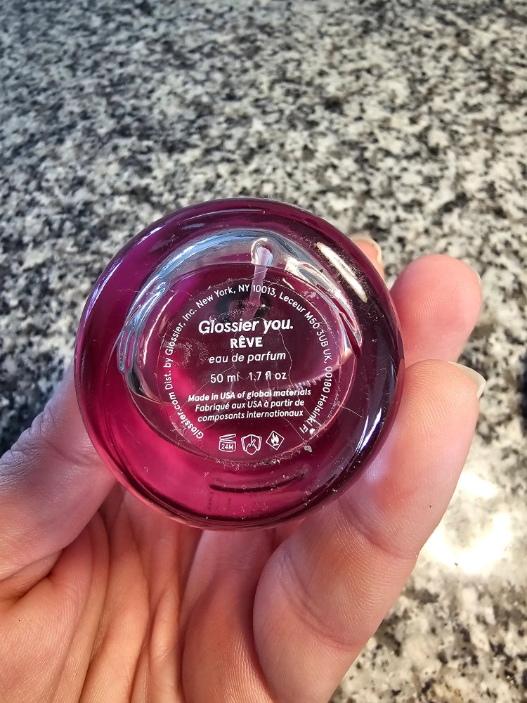 Glossier You Eau de Parfum. 50ml bottle. Beautiful purple hue. Pre-owned. bottle almost full. Authentic! Glossier You Rêve is a lush, dreamy gourmand fragrance that opens with rich Buttercream, followed by an addictive center of Plum Butter, Toasted Almond, Iris and creamy white Sandalwood—heightened by a warm, musky base driven by Ambrox. Rêve is a skin-scent enhancer that wears close to the skin and true to you, never overpowering your unique scent—because you are the final ingredient. $60 OBO 50ml