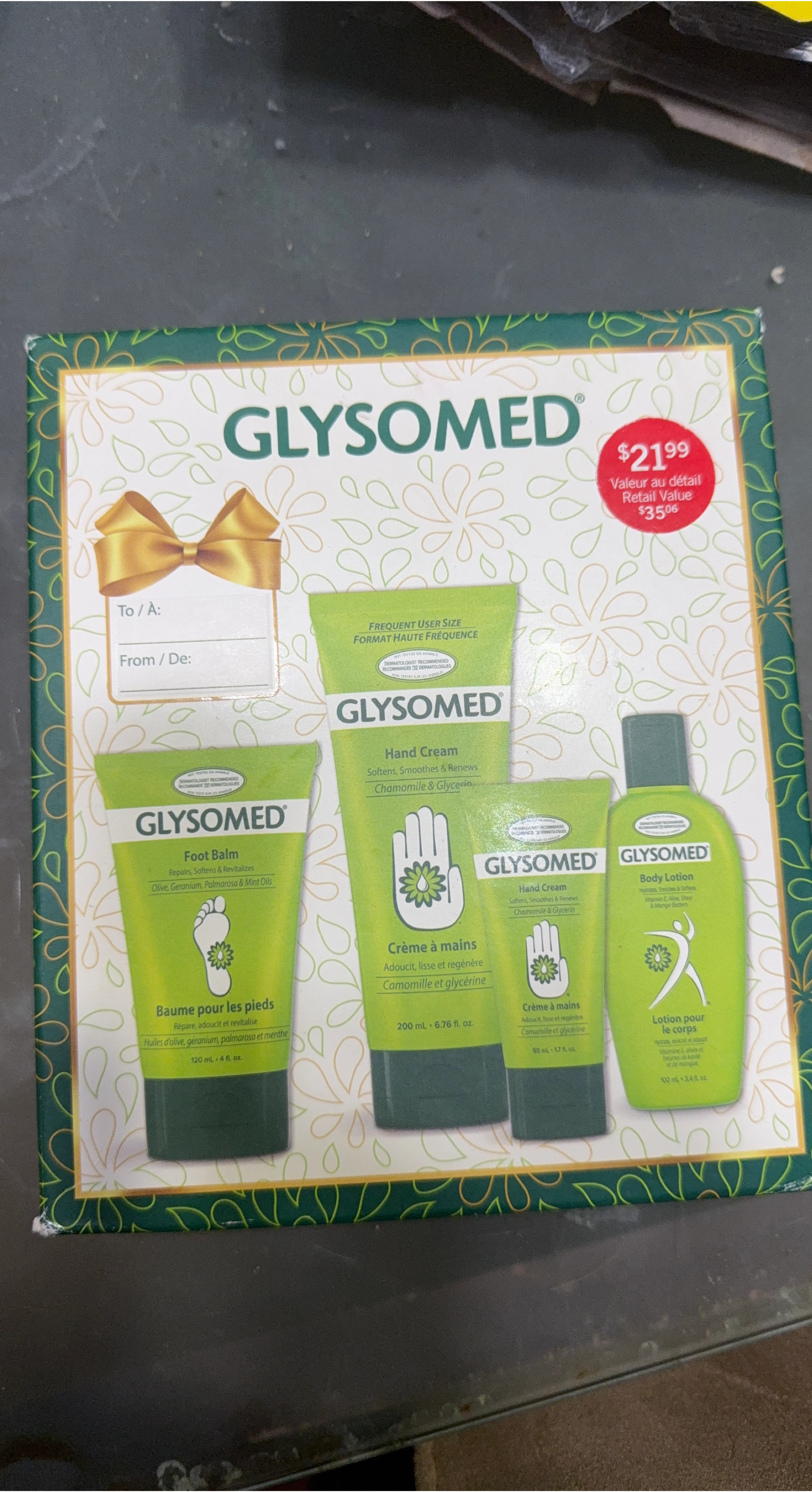 Selling a brand new Glysomed gift set! This set includes Glysomed foot balm (120 ml), hand cream (200 ml and 50 ml), and body lotion (100 ml). Perfect for keeping your skin soft and moisturized. Originally retailed for $35.06!