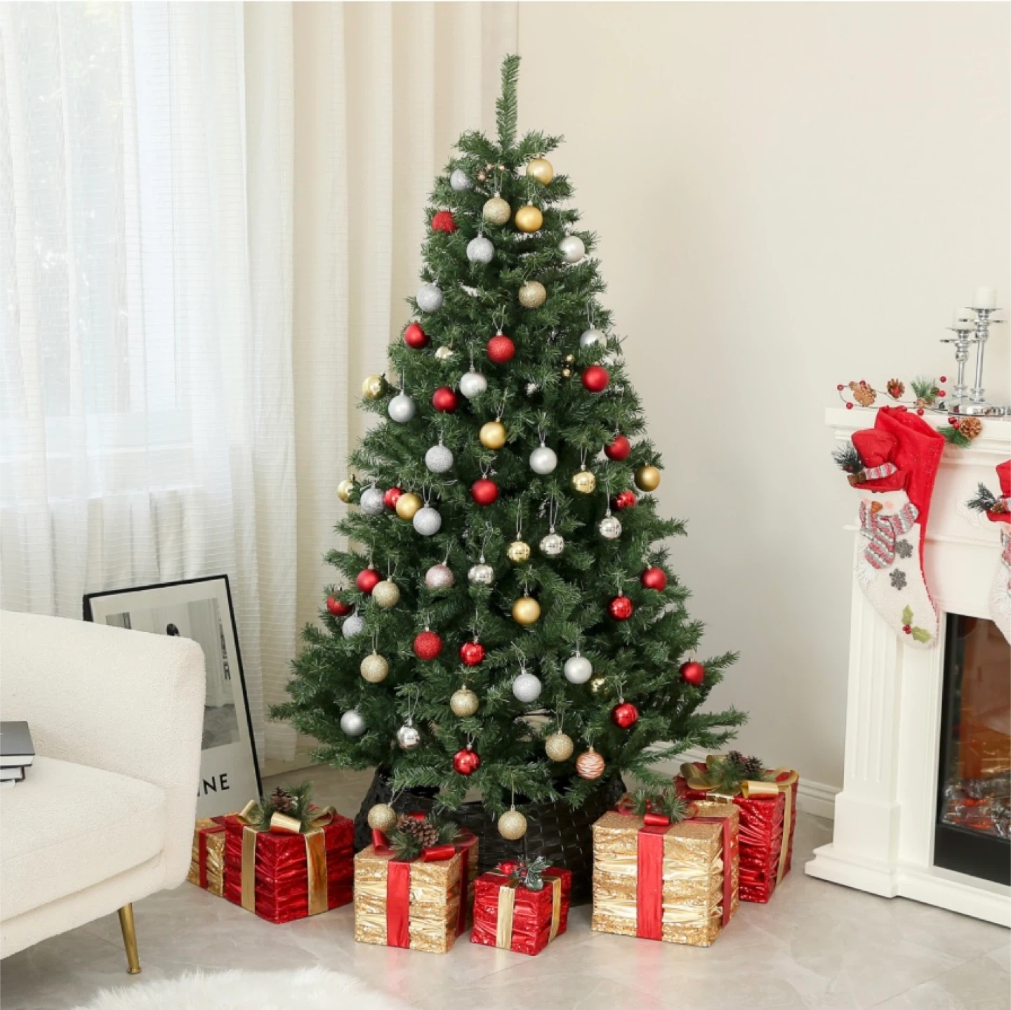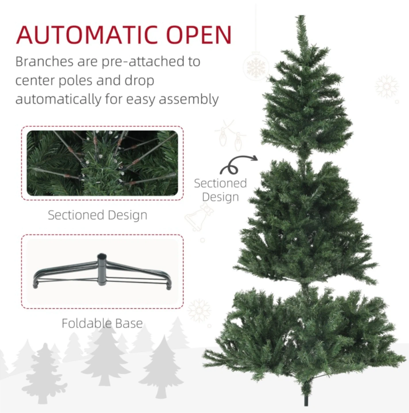Easy to assemble and comes with the stand. Perfect if you want a simple tree without spending too much.