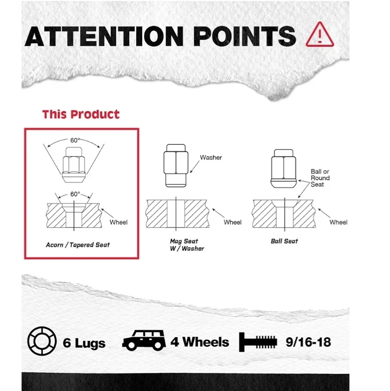 32 pcs Performance Black Acorn Lug Nuts 9/16-18