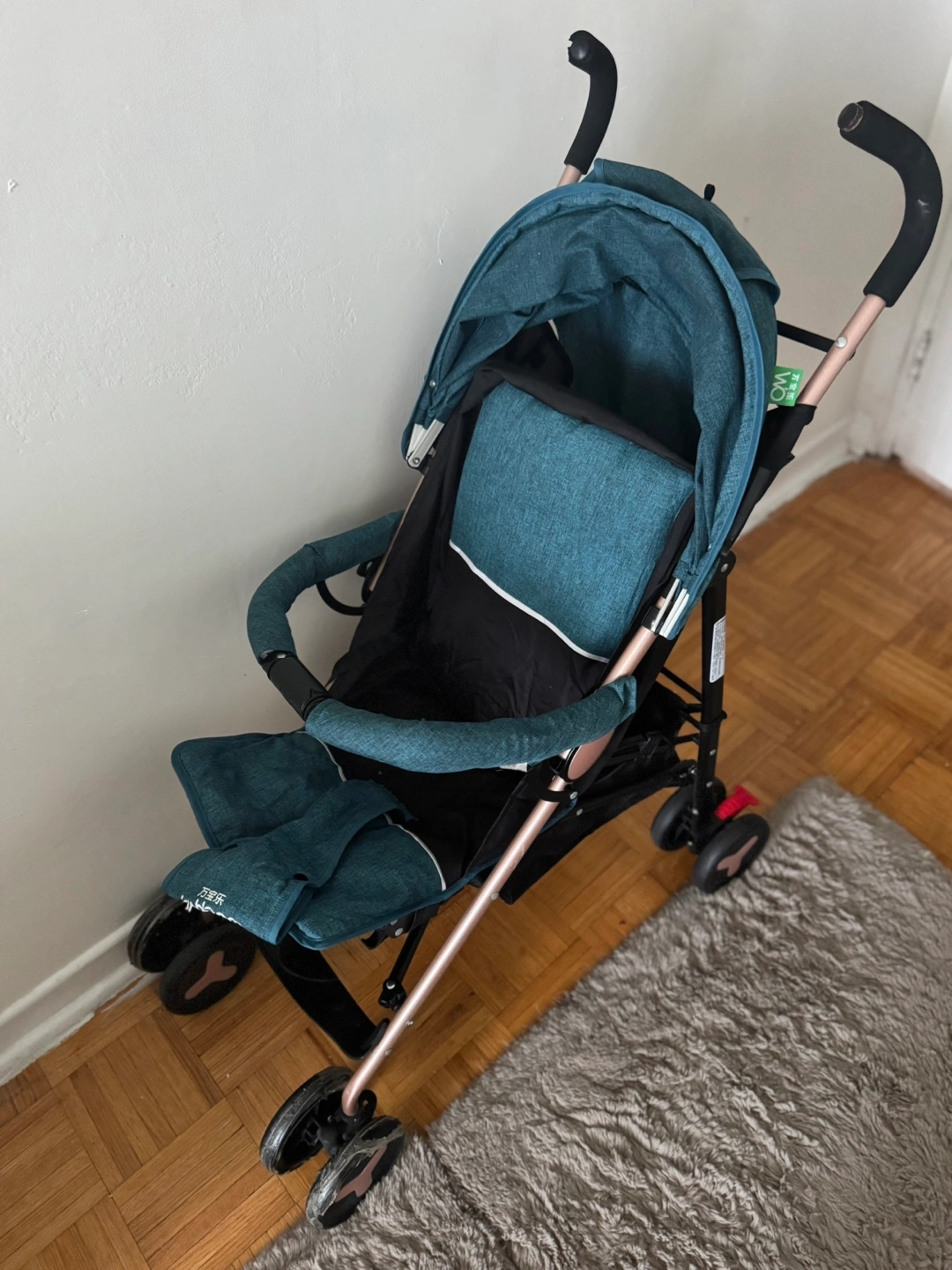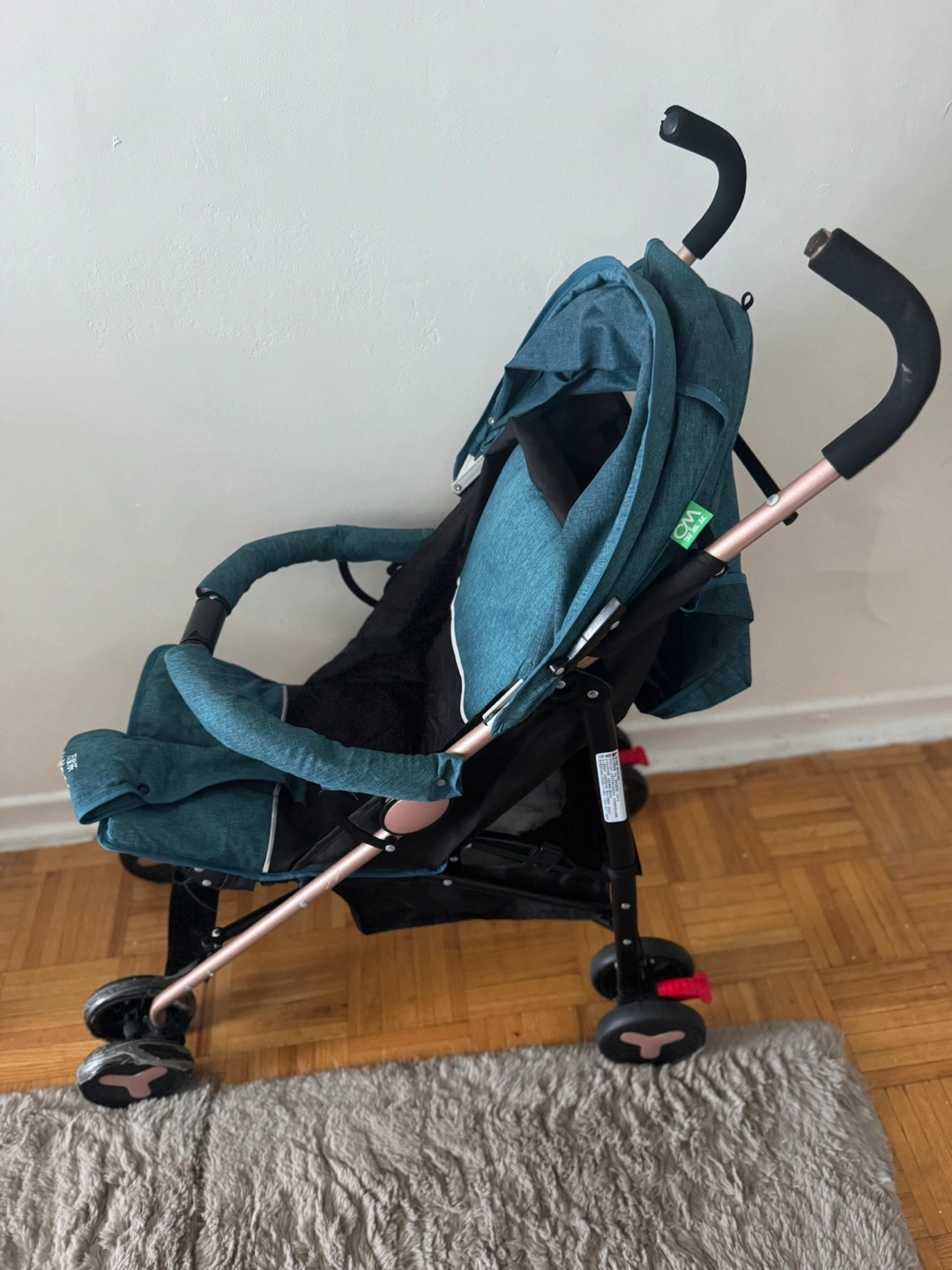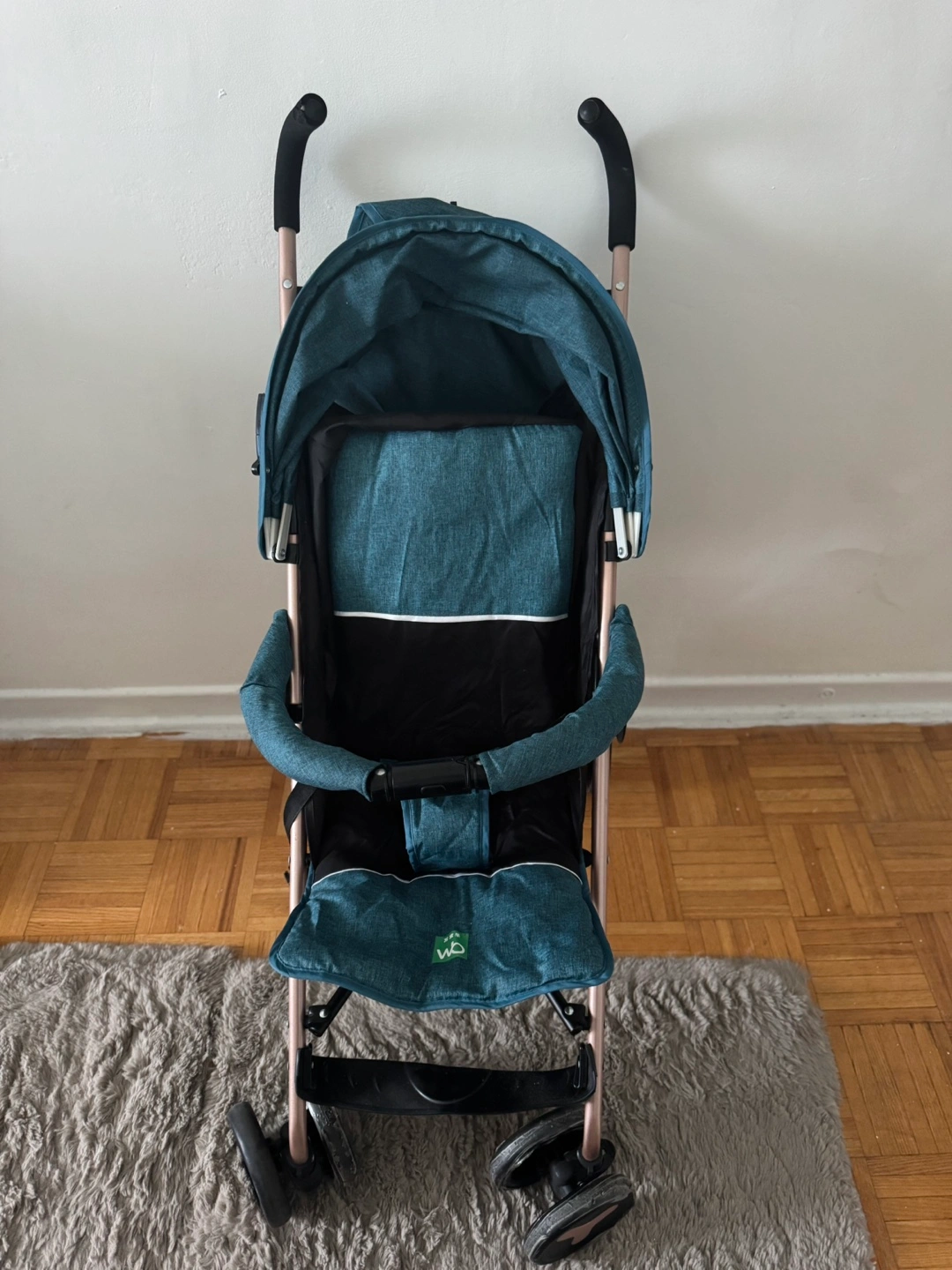 22Selling a GMA Green baby stroller in a nice teal colour. It's in good condition and perfect for taking your little one on walks around the neighbourhood. The stroller features a comfortable seat and a convenient storage basket underneath. Just used in airport