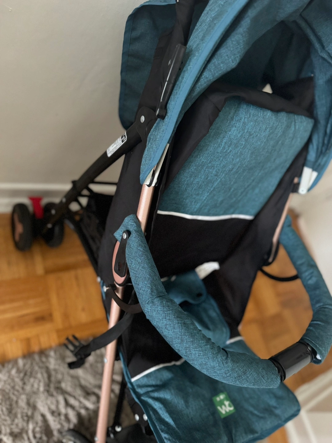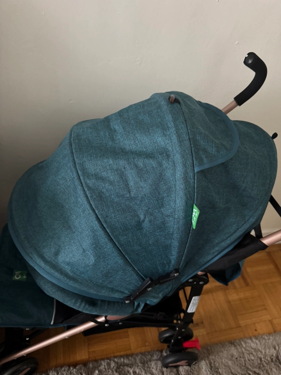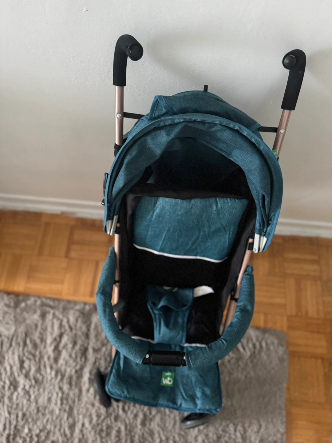 22Selling a GMA Green baby stroller in a nice teal colour. It's in good condition and perfect for taking your little one on walks around the neighbourhood. The stroller features a comfortable seat and a convenient storage basket underneath. Just used in airport