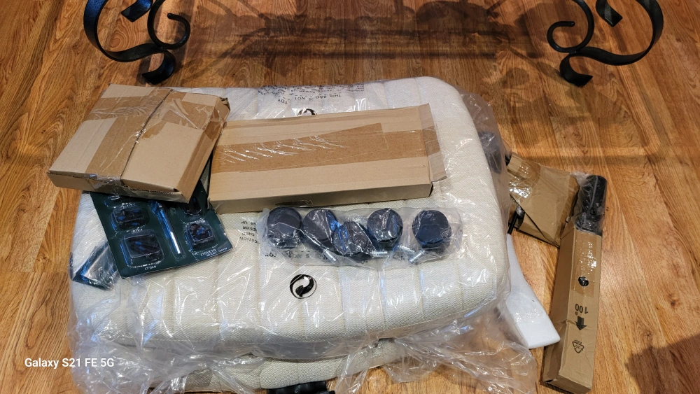 Brand new office chair, still in packaging. Light Beige wide fabric. Five-star base with wheels. Adjustable height. Comfortable design. Perfect for home or office.