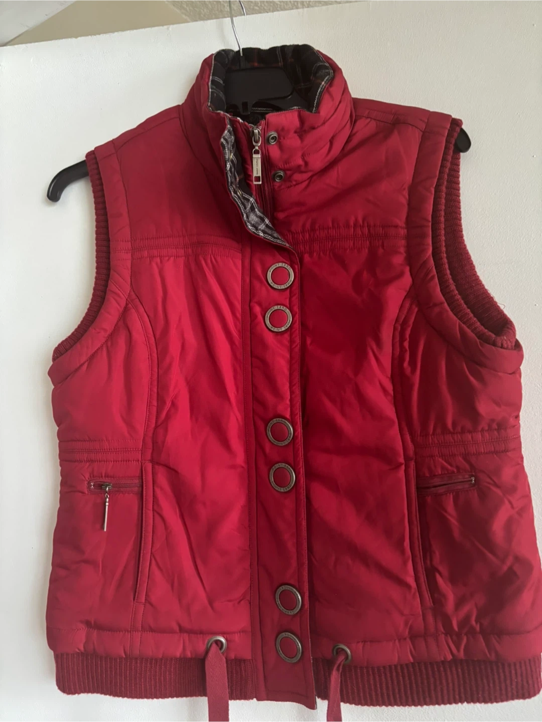 A warm, stylish sleeveless vest with a thoughtfully designed look and many finely crafted details. The piece stands out for its high-quality tailoring. It features a signature print from the well-known brand Point Zero, recognized for its modern and stylish pieces. This vest is perfect for creating fashionable outfits in cooler weather, combining comfort, practicality, and a trendy appearance.