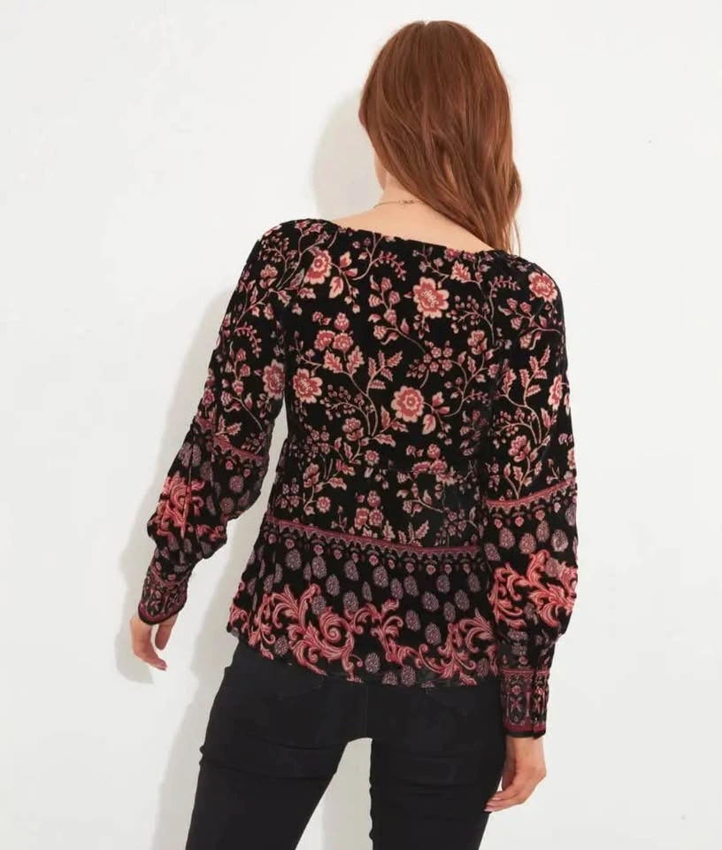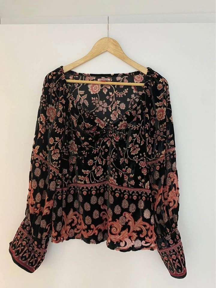 Unworn devoré top with balloon sleeves and bold print. Perfect for everyday or pairing with your fave jeans to go out in. No damage, in excellent condition. Brand Joe Browns. Pickup only at Boundary and Hastings.
