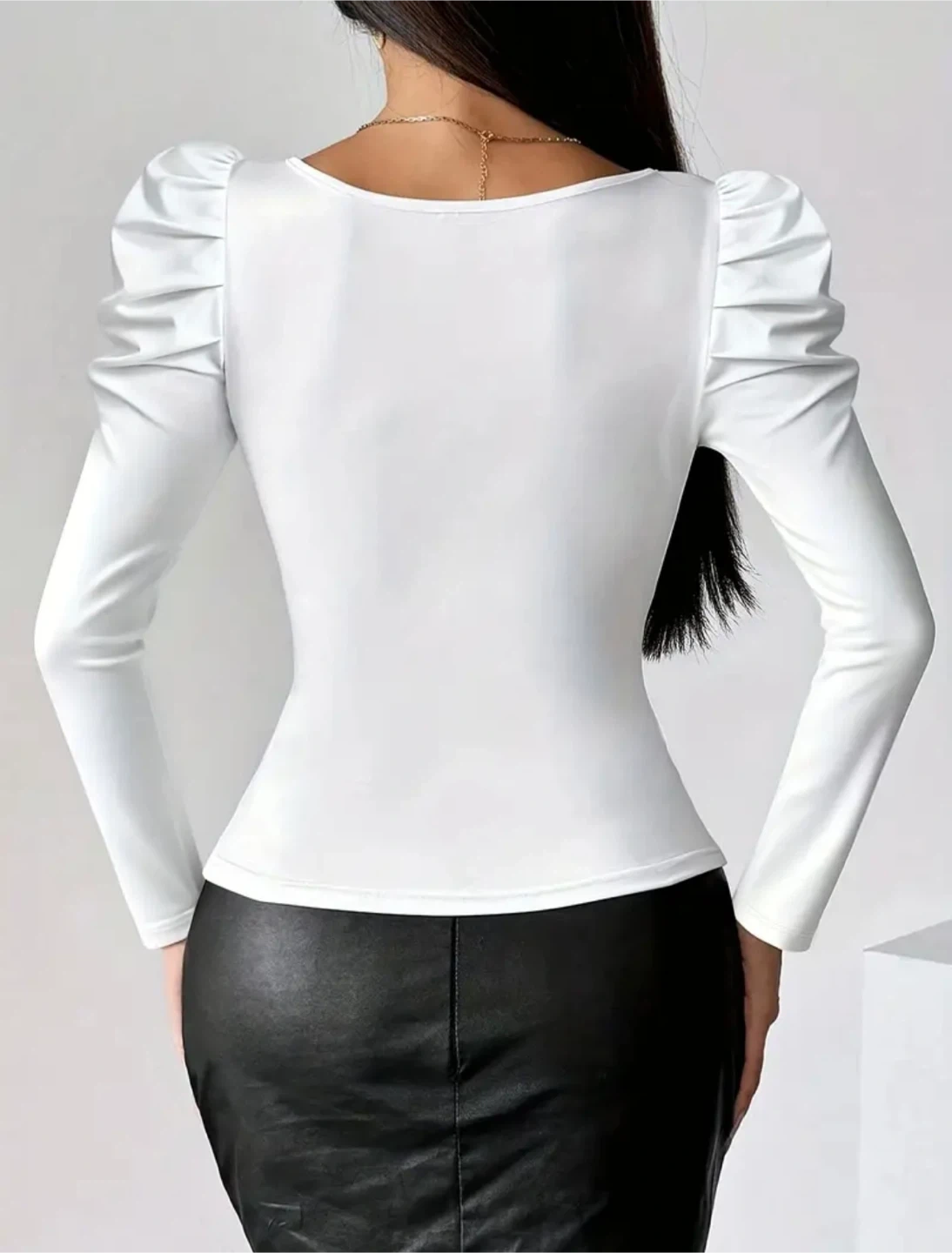 New White Puff Sleeve Zipper Top