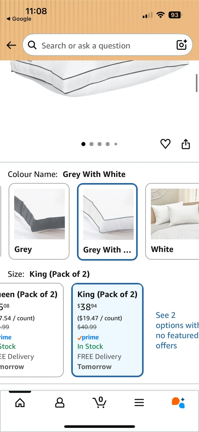 Selling a set of two King size Utopia Bedding pillows. They're white with a grey hem and feature a cooling hotel quality design. Filling is 100% polyester, cover is 100% polyester.