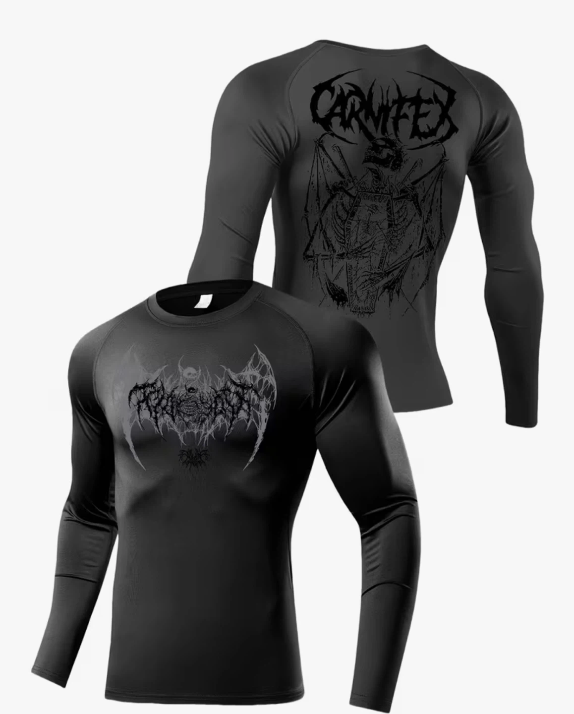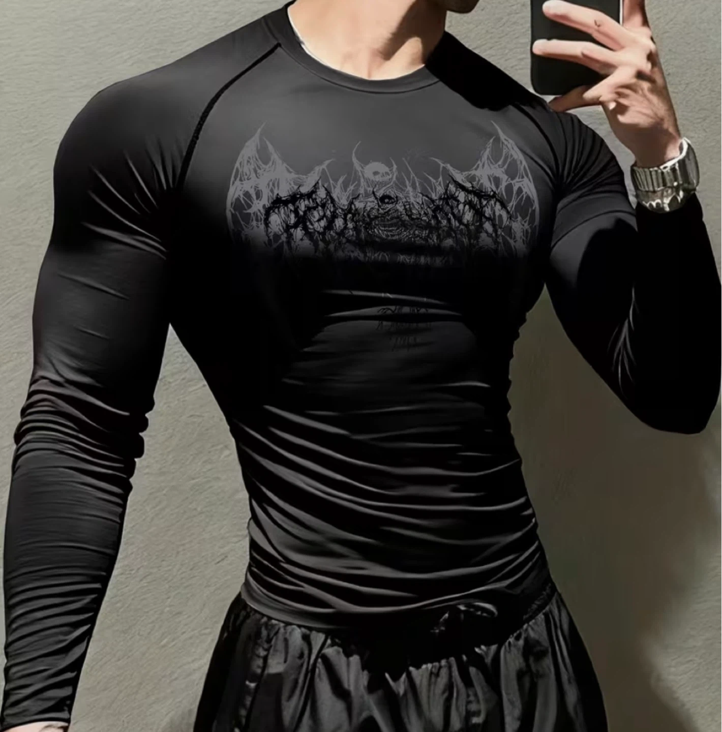 Black long sleeve shirt with a printed graphic on the front and back. Made with a stretch material. Great for a workout or casual wear only two left!