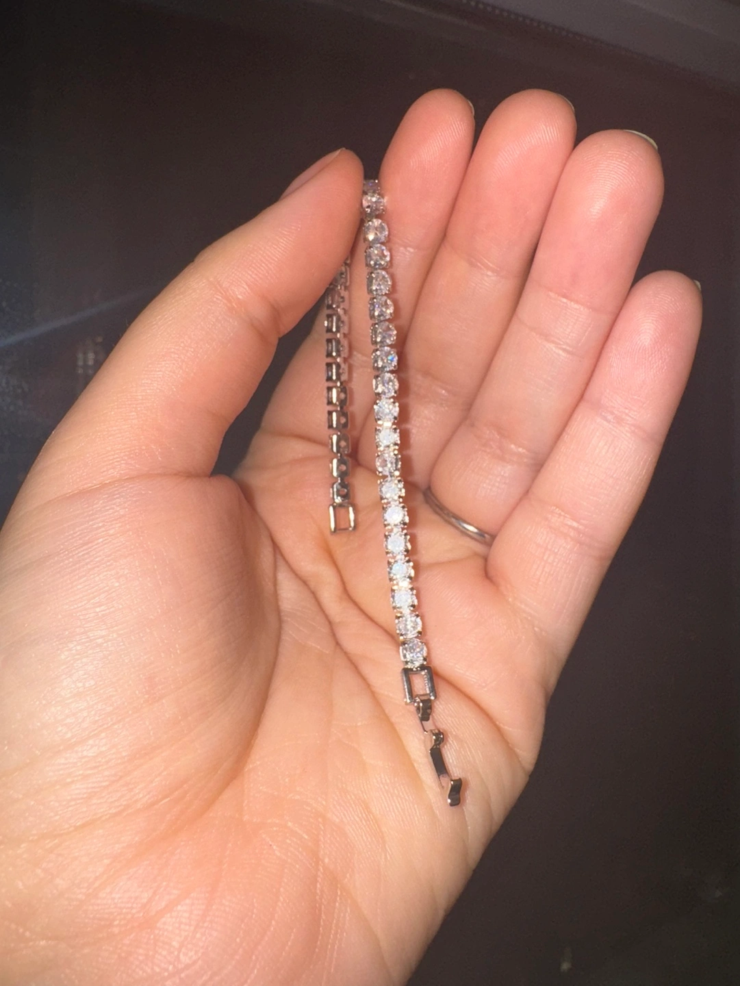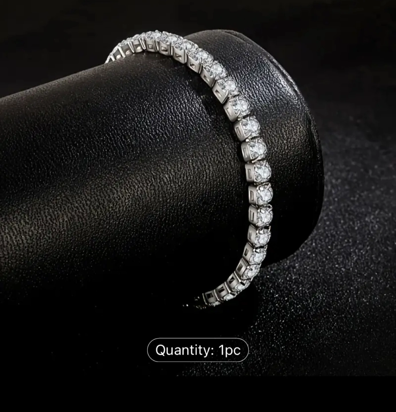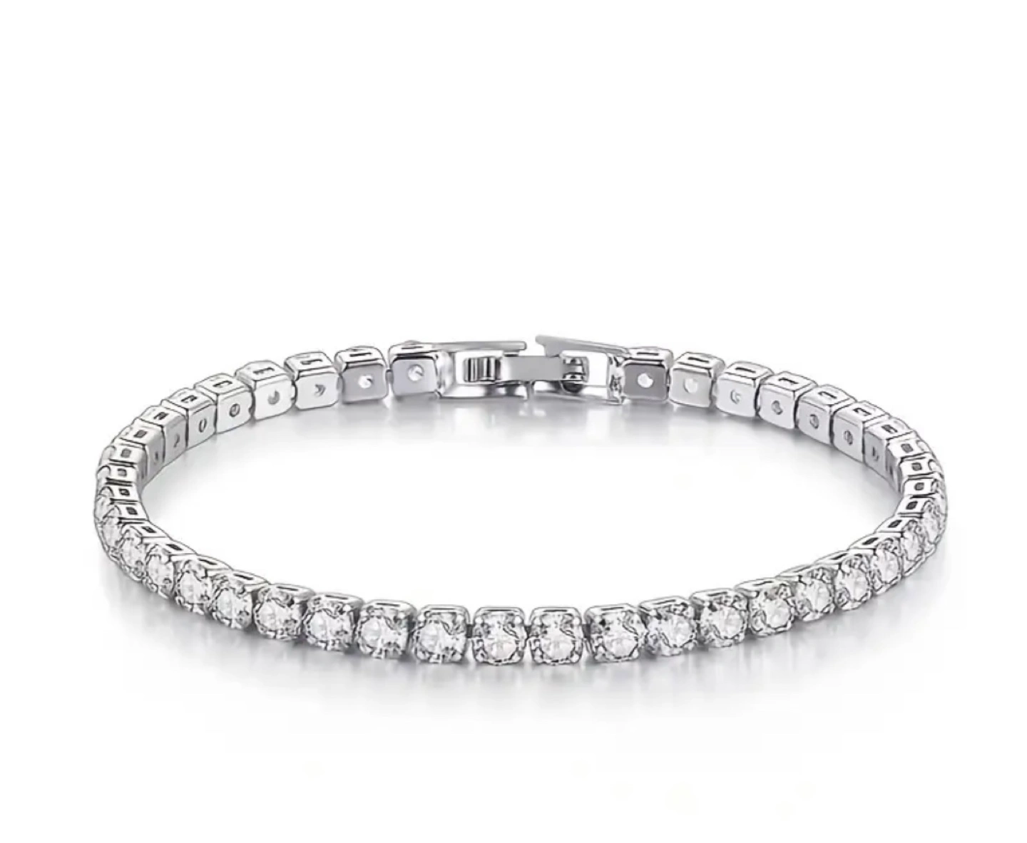 Sparkling bracelet. Features clear cubic zirconia stones. Silver-toned metal. Secure clasp. Perfect for everyday wear or special occasions.