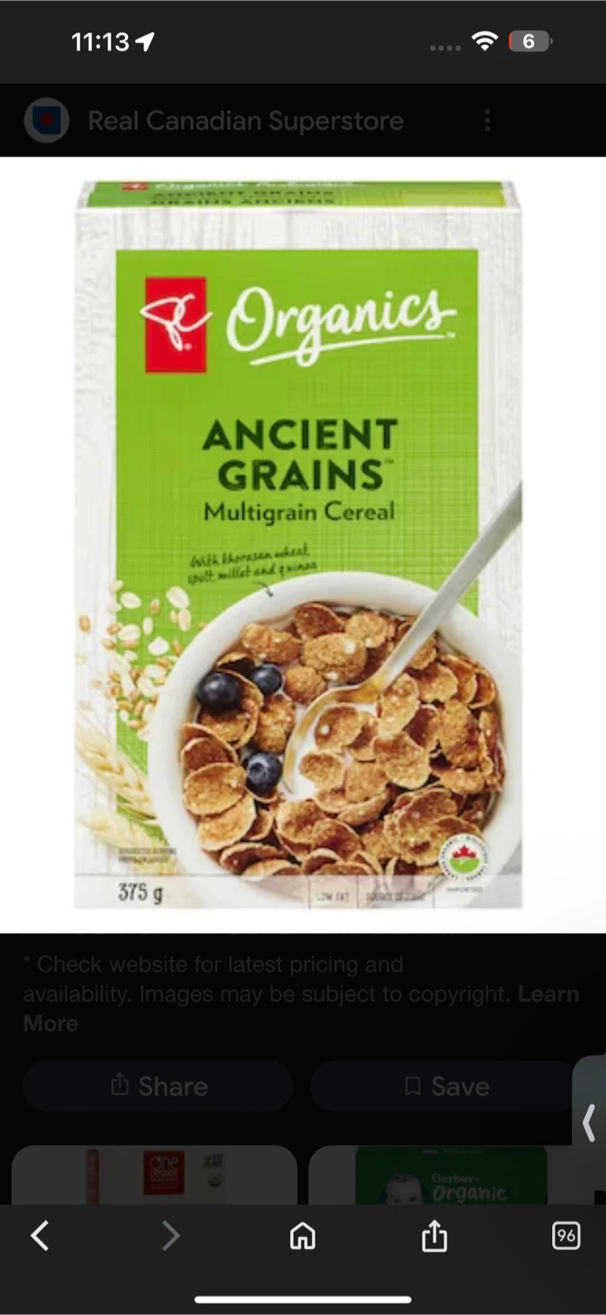 This PC Organics cereal is made with ancient grains like khorasan wheat, spelt, millet, and quinoa. It's a multigrain cereal in a 375g box. Enjoy it as a low-fat breakfast option!